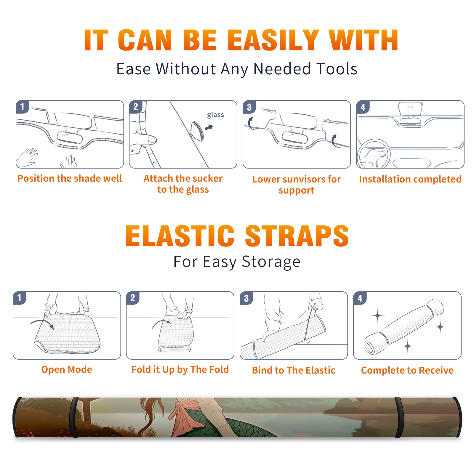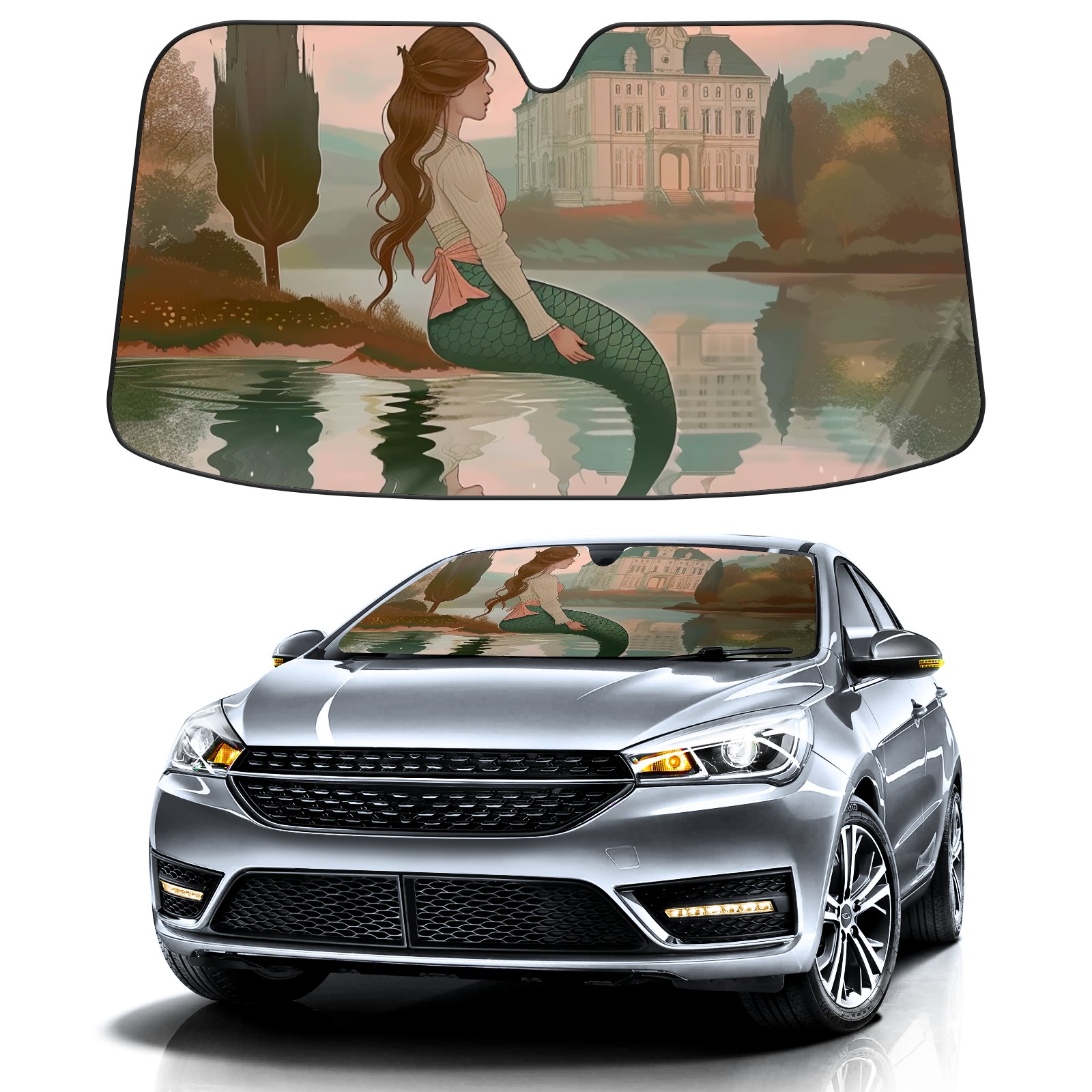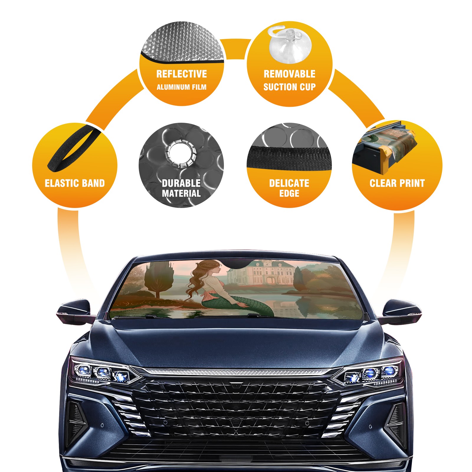 Car Windshield Sun Shade For Front Window Mermaid Foldable Vehicle Windshield Car Sun Visor Covers Automotive Window Protector Car Camping Privacy Sun Blocker