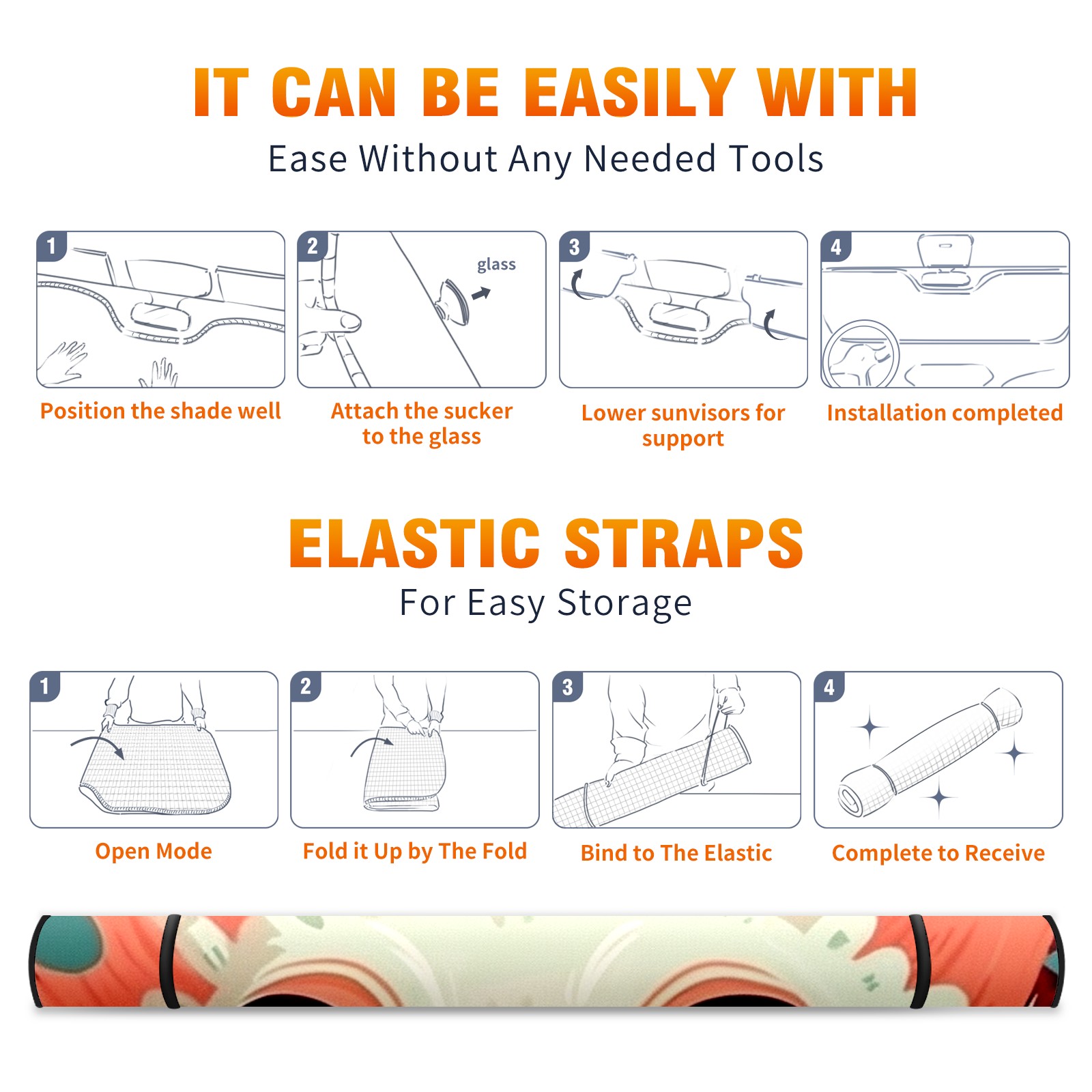 • Diameter /Size 63"L x 33.5"W Made from excellent materials which makes it sturdy and protects the car from the sun. Easy to use and pack. Makes the interior of the car cooler.You can easily stash the sunshade in the storage bag or store long term.It open and closes easy. Also the leather storage bag is durable and easy to put the umbrella back into.This windshield sunshade provides complete coverage and keeps your car interior cool under direct sun. It is easy to open and position under the windshield and around the rear-view mirror. Makes Your Car Easy To Identify, Perfect For Finding Your Car In Crowded Parking Lots And Garages.Great Choice: It Is A Great Gift For Dad, Boyfriend, Brother, Brother And Uncle, Friends, Classmates, Family And So On. Notice: Due To Difference Computer Monitors, The Color Maybe Slightly Different From Picture. As Different Measurement Methods, Measurement Data Will Float Within 2%.I Hope You Understand. If You Have Any Question About The Item Please Do Not Hesitate To Contact Us Immediately And We Will Give You A Satisfactory Reply Within 24 Hours.