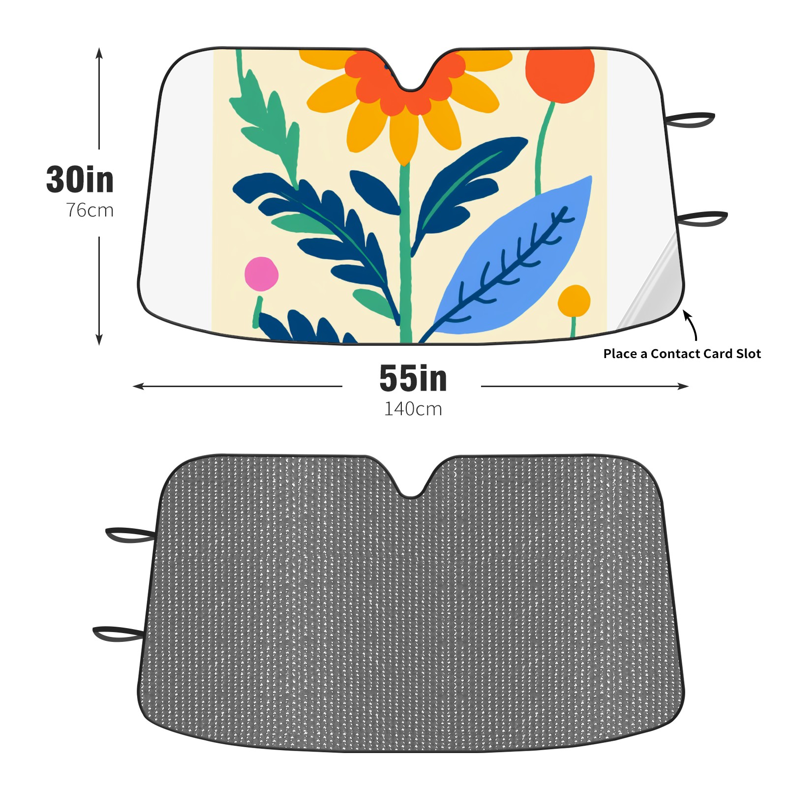 Diameter /Size 63"L x 33.5"W Made from excellent materials which makes it sturdy and protects the car from the sun. Easy to use and pack. Makes the interior of the car cooler.You can easily stash the sunshade in the storage bag or store long term.It open and closes easy. Also the leather storage bag is durable and easy to put the umbrella back into.This windshield sunshade provides complete coverage and keeps your car interior cool under direct sun. It is easy to open and position under the windshield and around the rear-view mirror. Makes Your Car Easy To Identify, Perfect For Finding Your Car In Crowded Parking Lots And Garages.Great Choice: It Is A Great Gift For Dad, Boyfriend, Brother, Brother And Uncle, Friends, Classmates, Family And So On. Notice: Due To Difference Computer Monitors, The Color Maybe Slightly Different From Picture. As Different Measurement Methods, Measurement Data Will Float Within 2%.I Hope You Understand. If You Have Any Question About The Item Please Do Not Hesitate To Contact Us Immediately And We Will Give You A Satisfactory Reply Within 24 Hours.