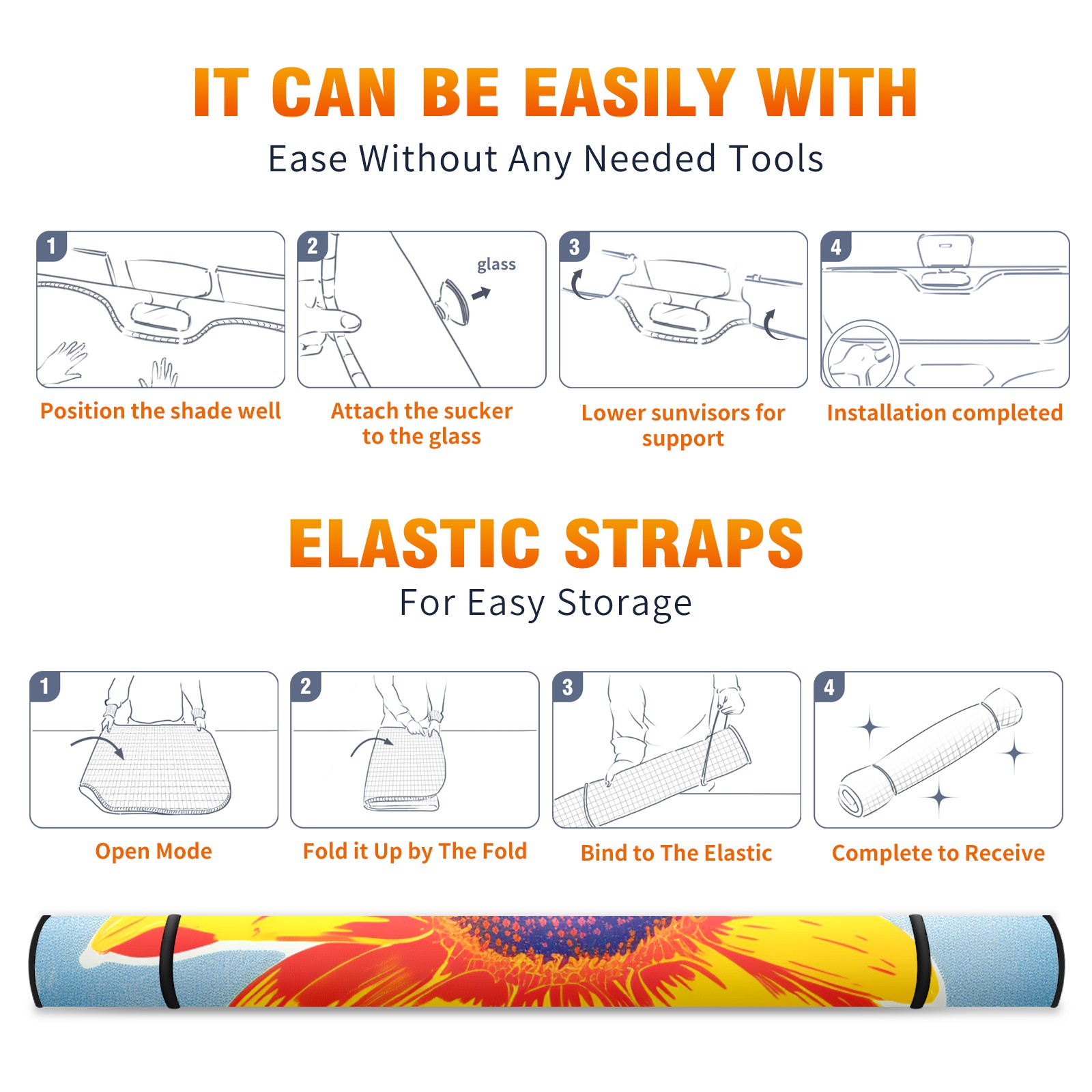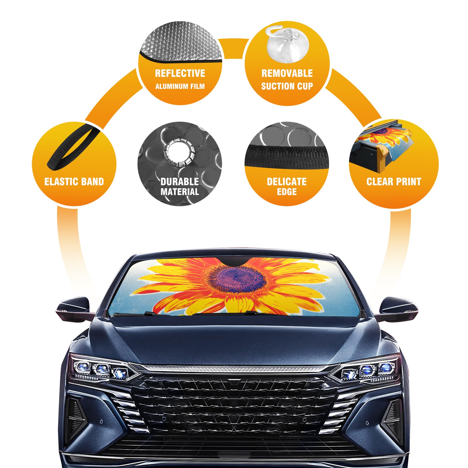 Car Windshield Sun Shade For Front Window Sunflower (71) Foldable Vehicle Windshield Car Sun Visor Covers Automotive Window Protector Car Camping Privacy Sun Blocker