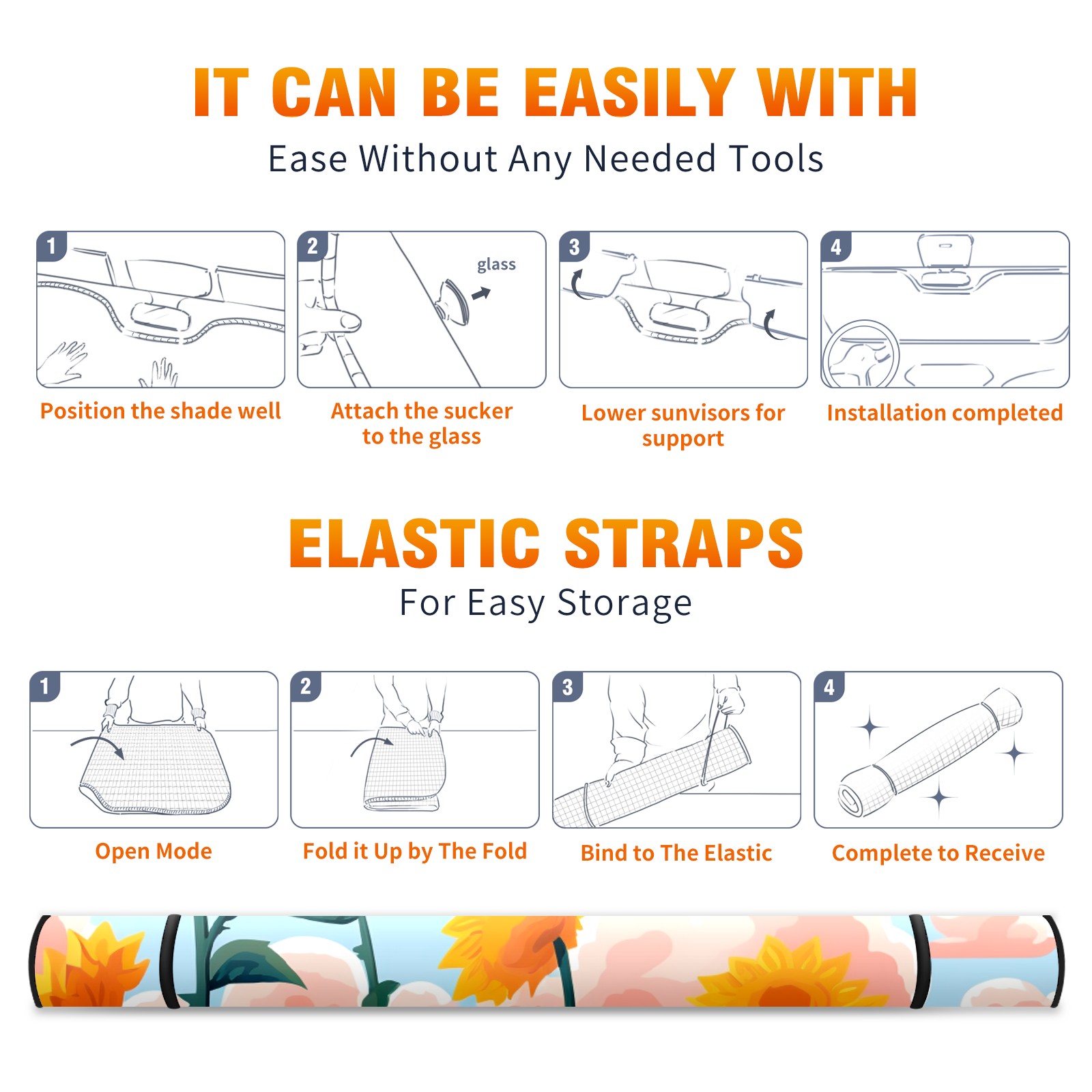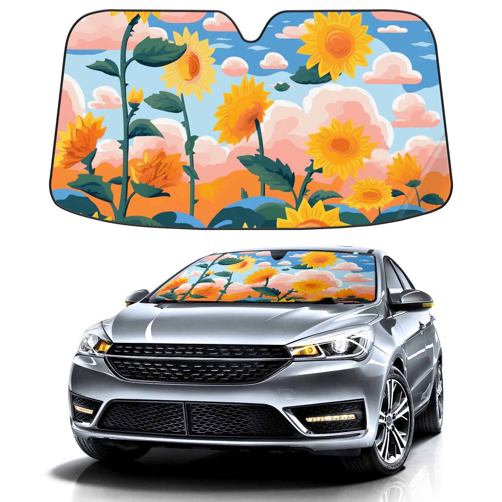Car Windshield Sun Shade For Front Window Sunflower (80) Foldable Vehicle Windshield Car Sun Visor Covers Automotive Window Protector Car Camping Privacy Sun Blocker