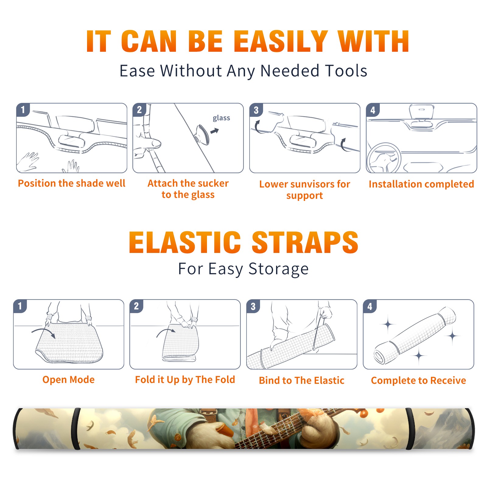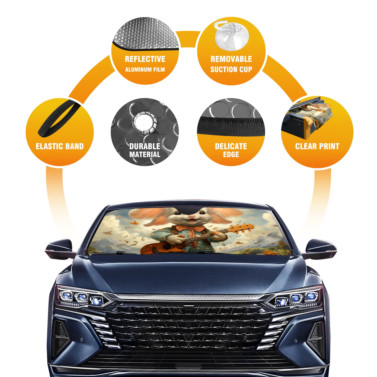 Car Windshield Sun Shade For Front Window Rabbit Foldable Vehicle Windshield Car Sun Visor Covers Automotive Window Protector Car Camping Privacy Sun Blocker