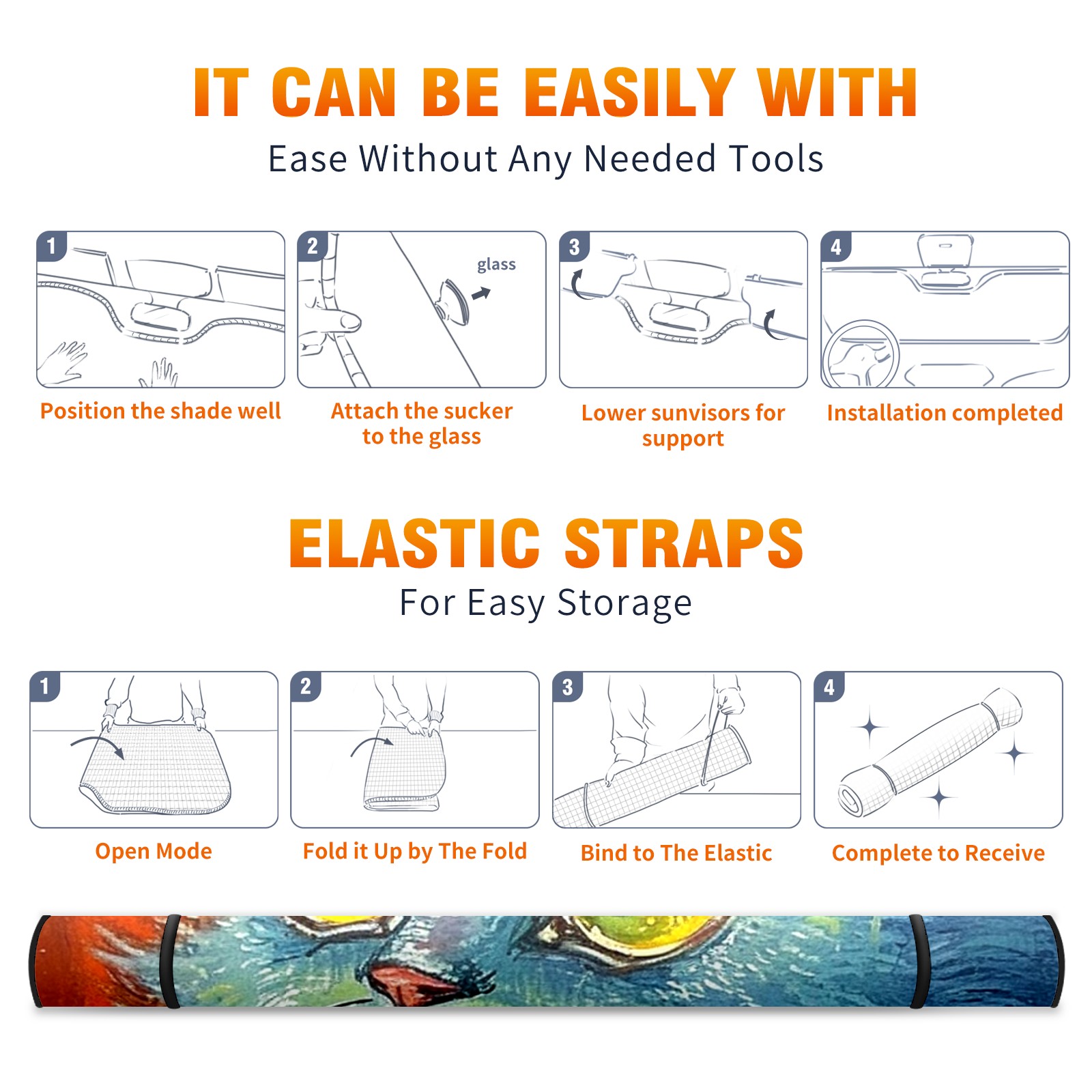 • Diameter /Size 63"L x 33.5"W Made from excellent materials which makes it sturdy and protects the car from the sun. Easy to use and pack. Makes the interior of the car cooler.You can easily stash the sunshade in the storage bag or store long term.It open and closes easy. Also the leather storage bag is durable and easy to put the umbrella back into.This windshield sunshade provides complete coverage and keeps your car interior cool under direct sun. It is easy to open and position under the windshield and around the rear-view mirror. Makes Your Car Easy To Identify, Perfect For Finding Your Car In Crowded Parking Lots And Garages.Great Choice: It Is A Great Gift For Dad, Boyfriend, Brother, Brother And Uncle, Friends, Classmates, Family And So On. Notice: Due To Difference Computer Monitors, The Color Maybe Slightly Different From Picture. As Different Measurement Methods, Measurement Data Will Float Within 2%.I Hope You Understand. If You Have Any Question About The Item Please Do Not Hesitate To Contact Us Immediately And We Will Give You A Satisfactory Reply Within 24 Hours.