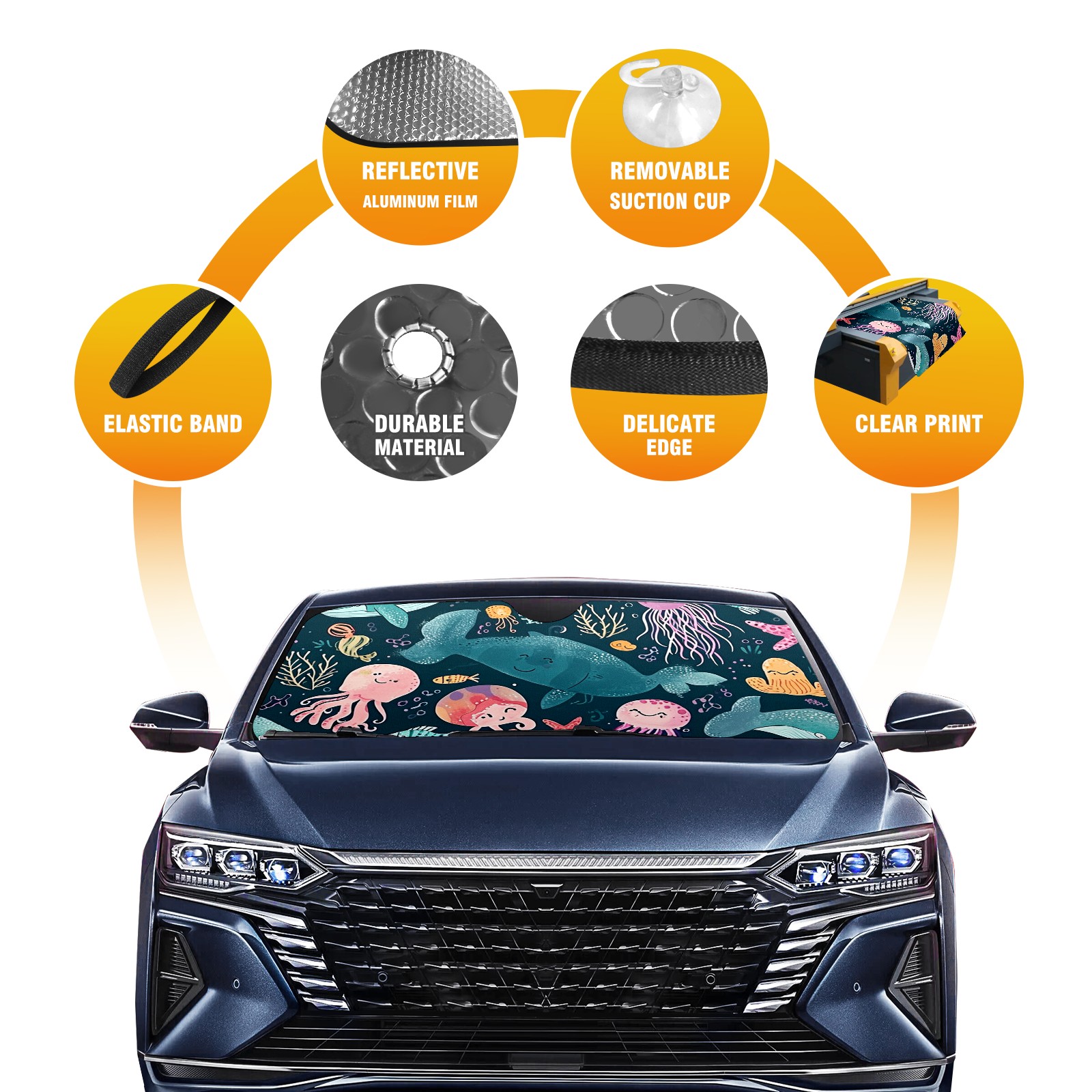 • Diameter /Size 63"L x 33.5"W Made from excellent materials which makes it sturdy and protects the car from the sun. Easy to use and pack. Makes the interior of the car cooler.You can easily stash the sunshade in the storage bag or store long term.It open and closes easy. Also the leather storage bag is durable and easy to put the umbrella back into.This windshield sunshade provides complete coverage and keeps your car interior cool under direct sun. It is easy to open and position under the windshield and around the rear-view mirror. Makes Your Car Easy To Identify, Perfect For Finding Your Car In Crowded Parking Lots And Garages.Great Choice: It Is A Great Gift For Dad, Boyfriend, Brother, Brother And Uncle, Friends, Classmates, Family And So On. Notice: Due To Difference Computer Monitors, The Color Maybe Slightly Different From Picture. As Different Measurement Methods, Measurement Data Will Float Within 2%.I Hope You Understand. If You Have Any Question About The Item Please Do Not Hesitate To Contact Us Immediately And We Will Give You A Satisfactory Reply Within 24 Hours.