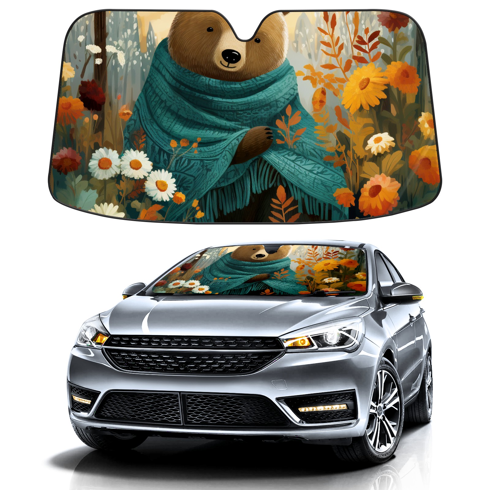 Car Windshield Sun Shade For Front Window Bear Foldable Vehicle Windshield Car Sun Visor Covers Automotive Window Protector Car Camping Privacy Sun Blocker