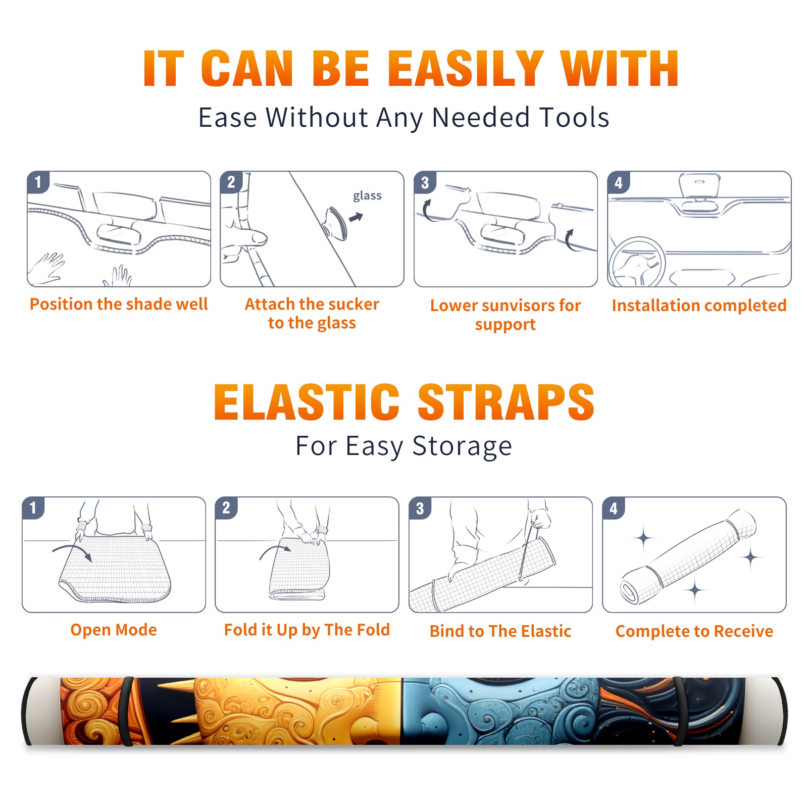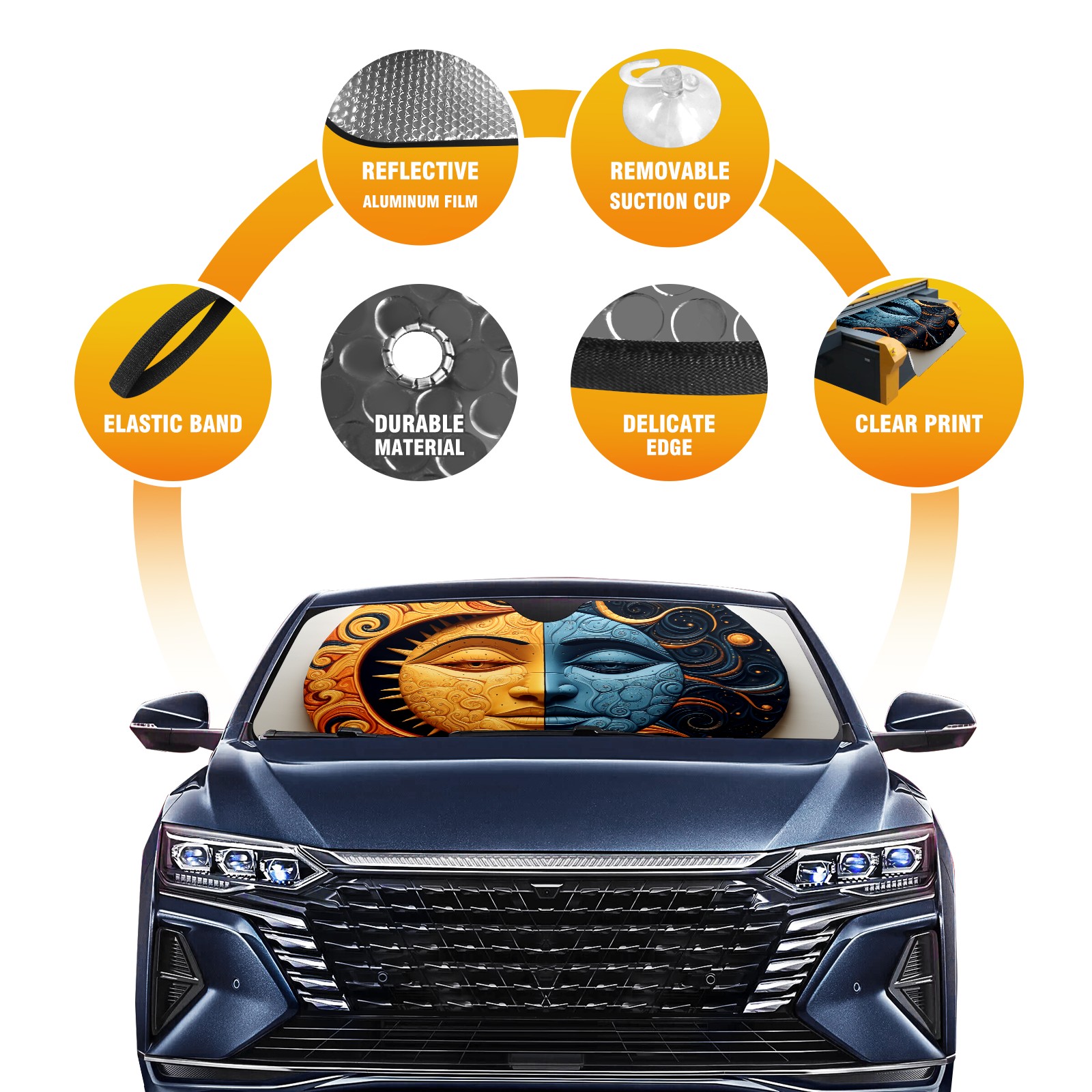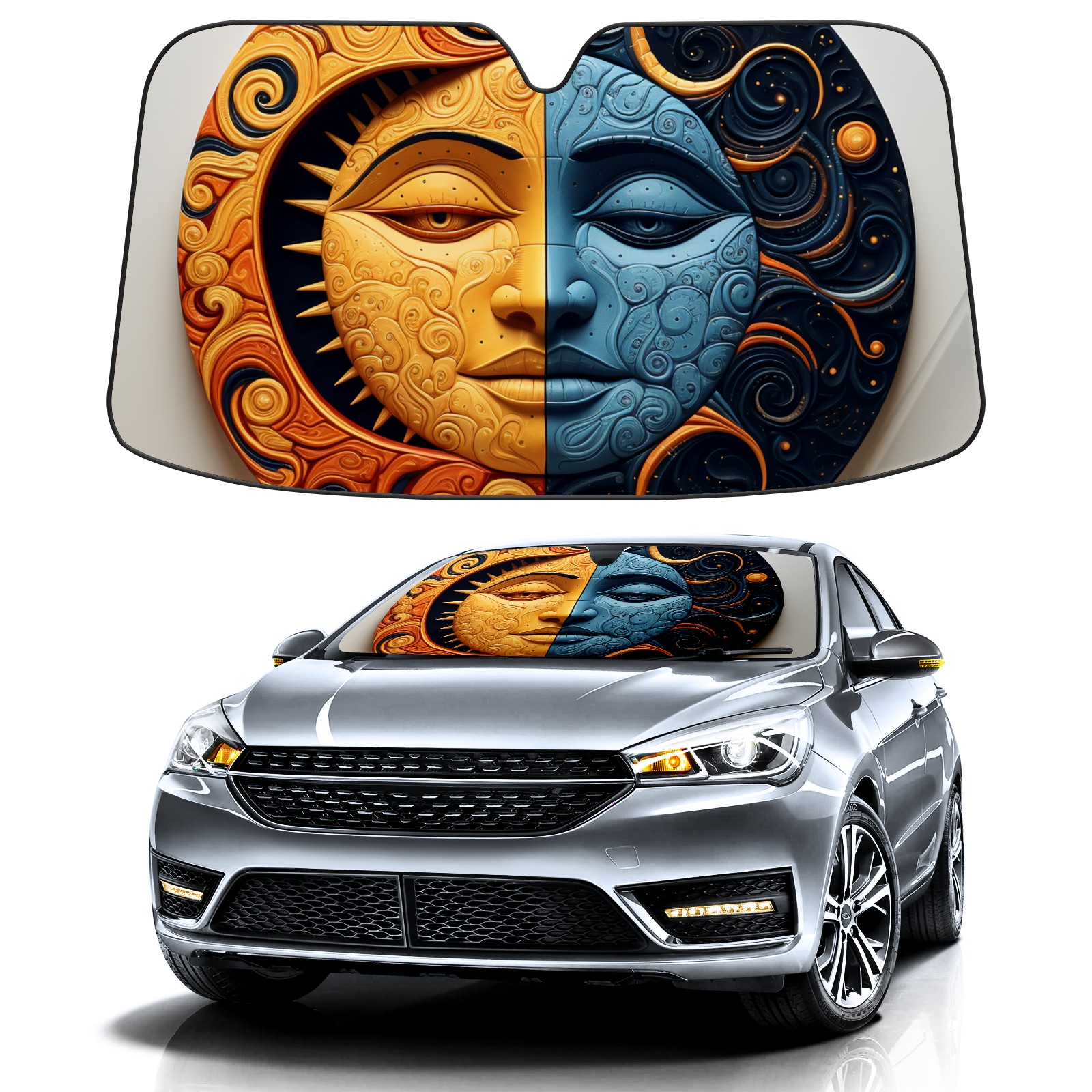 Car Windshield Sun Shade For Front Window Sun And Moon Foldable Vehicle Windshield Car Sun Visor Covers Automotive Window Protector Car Camping Privacy Sun Blocker