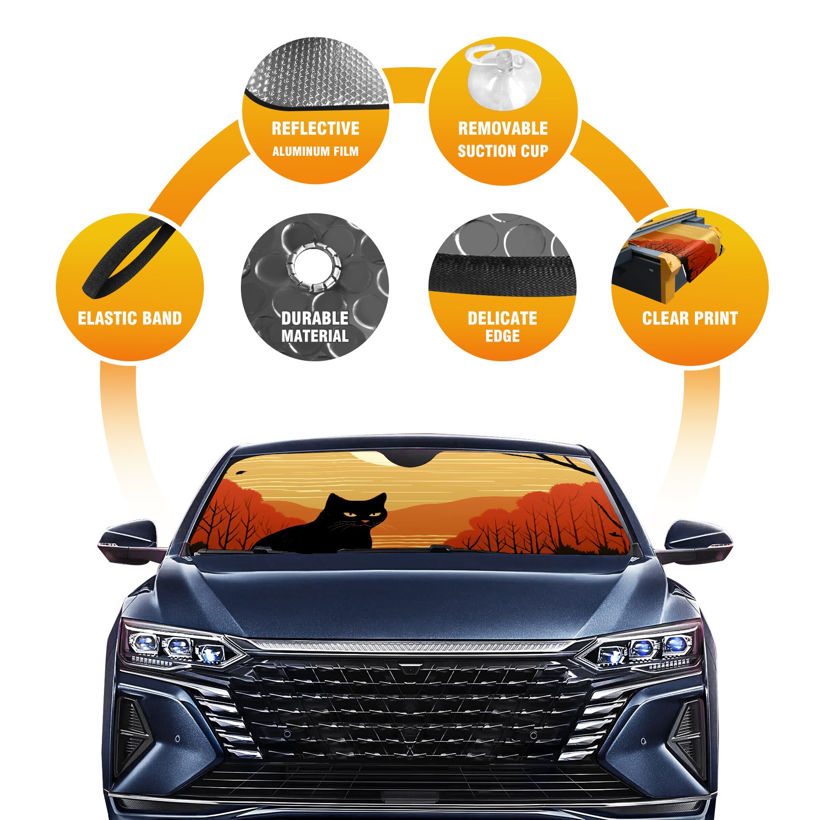 • Diameter /Size 63"L x 33.5"W Made from excellent materials which makes it sturdy and protects the car from the sun. Easy to use and pack. Makes the interior of the car cooler.You can easily stash the sunshade in the storage bag or store long term.It open and closes easy. Also the leather storage bag is durable and easy to put the umbrella back into.This windshield sunshade provides complete coverage and keeps your car interior cool under direct sun. It is easy to open and position under the windshield and around the rear-view mirror. Makes Your Car Easy To Identify, Perfect For Finding Your Car In Crowded Parking Lots And Garages.Great Choice: It Is A Great Gift For Dad, Boyfriend, Brother, Brother And Uncle, Friends, Classmates, Family And So On. Notice: Due To Difference Computer Monitors, The Color Maybe Slightly Different From Picture. As Different Measurement Methods, Measurement Data Will Float Within 2%.I Hope You Understand. If You Have Any Question About The Item Please Do Not Hesitate To Contact Us Immediately And We Will Give You A Satisfactory Reply Within 24 Hours.