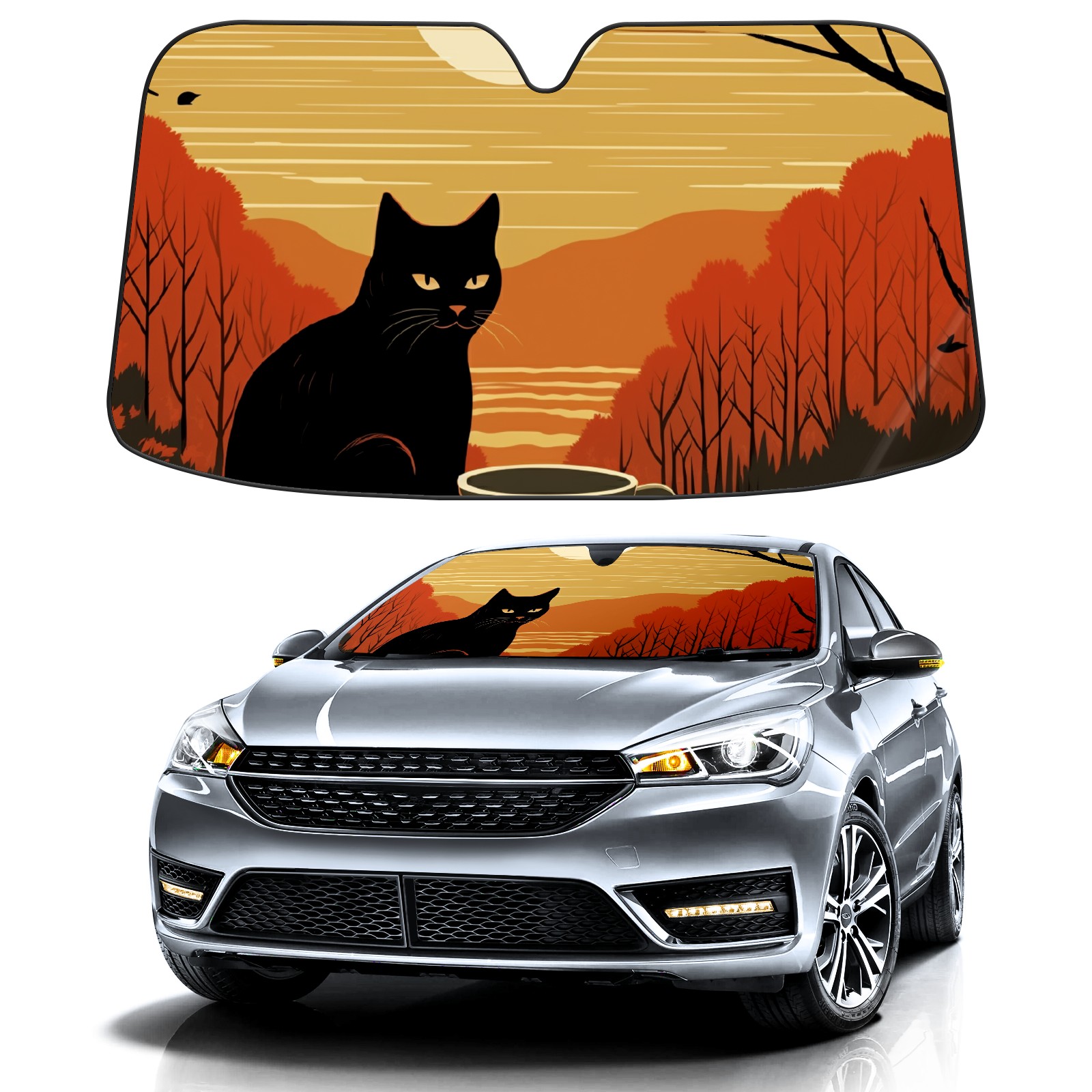 Car Windshield Sun Shade For Front Window Forest Foldable Vehicle Windshield Car Sun Visor Covers Automotive Window Protector Car Camping Privacy Sun Blocker
