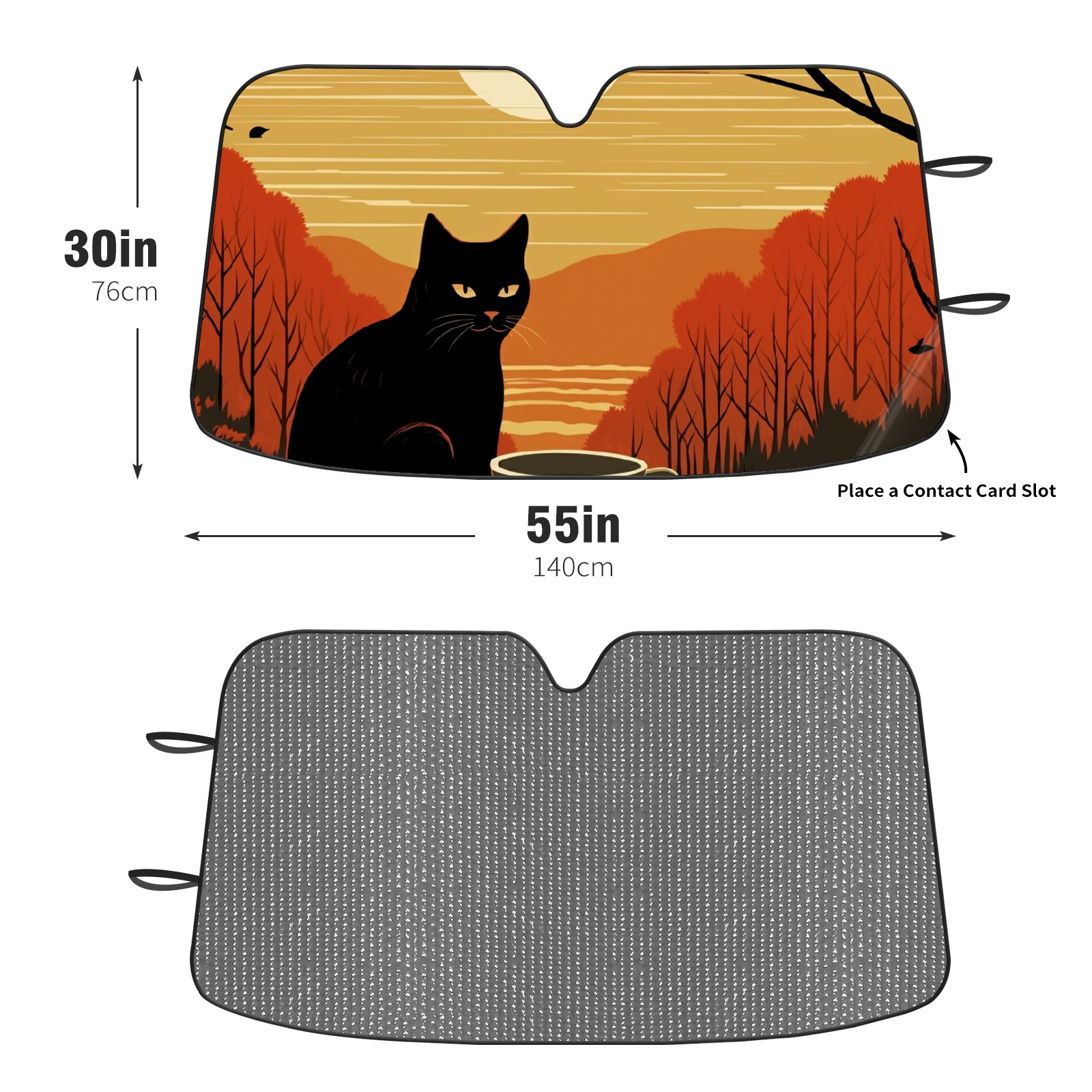 Diameter /Size 63"L x 33.5"W Made from excellent materials which makes it sturdy and protects the car from the sun. Easy to use and pack. Makes the interior of the car cooler.You can easily stash the sunshade in the storage bag or store long term.It open and closes easy. Also the leather storage bag is durable and easy to put the umbrella back into.This windshield sunshade provides complete coverage and keeps your car interior cool under direct sun. It is easy to open and position under the windshield and around the rear-view mirror. Makes Your Car Easy To Identify, Perfect For Finding Your Car In Crowded Parking Lots And Garages.Great Choice: It Is A Great Gift For Dad, Boyfriend, Brother, Brother And Uncle, Friends, Classmates, Family And So On. Notice: Due To Difference Computer Monitors, The Color Maybe Slightly Different From Picture. As Different Measurement Methods, Measurement Data Will Float Within 2%.I Hope You Understand. If You Have Any Question About The Item Please Do Not Hesitate To Contact Us Immediately And We Will Give You A Satisfactory Reply Within 24 Hours.