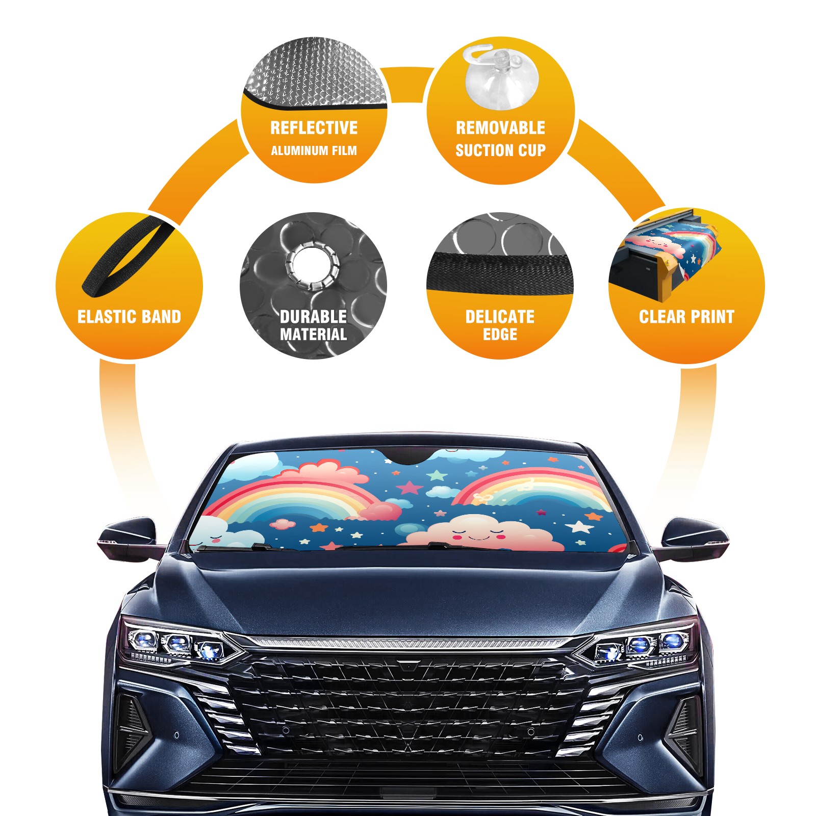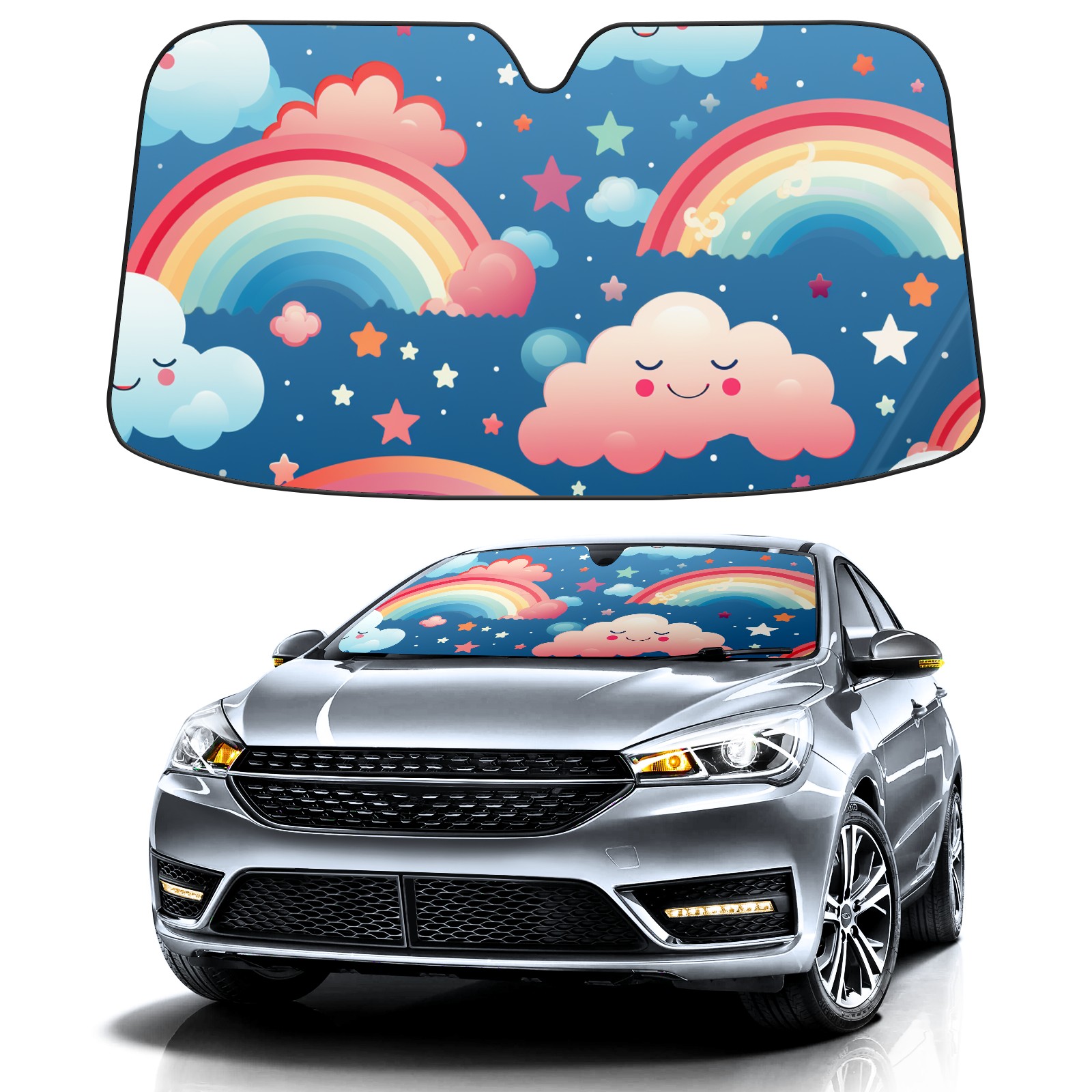 Car Windshield Sun Shade For Front Window Stars And Clouds Foldable Vehicle Windshield Car Sun Visor Covers Automotive Window Protector Car Camping Privacy Sun Blocker