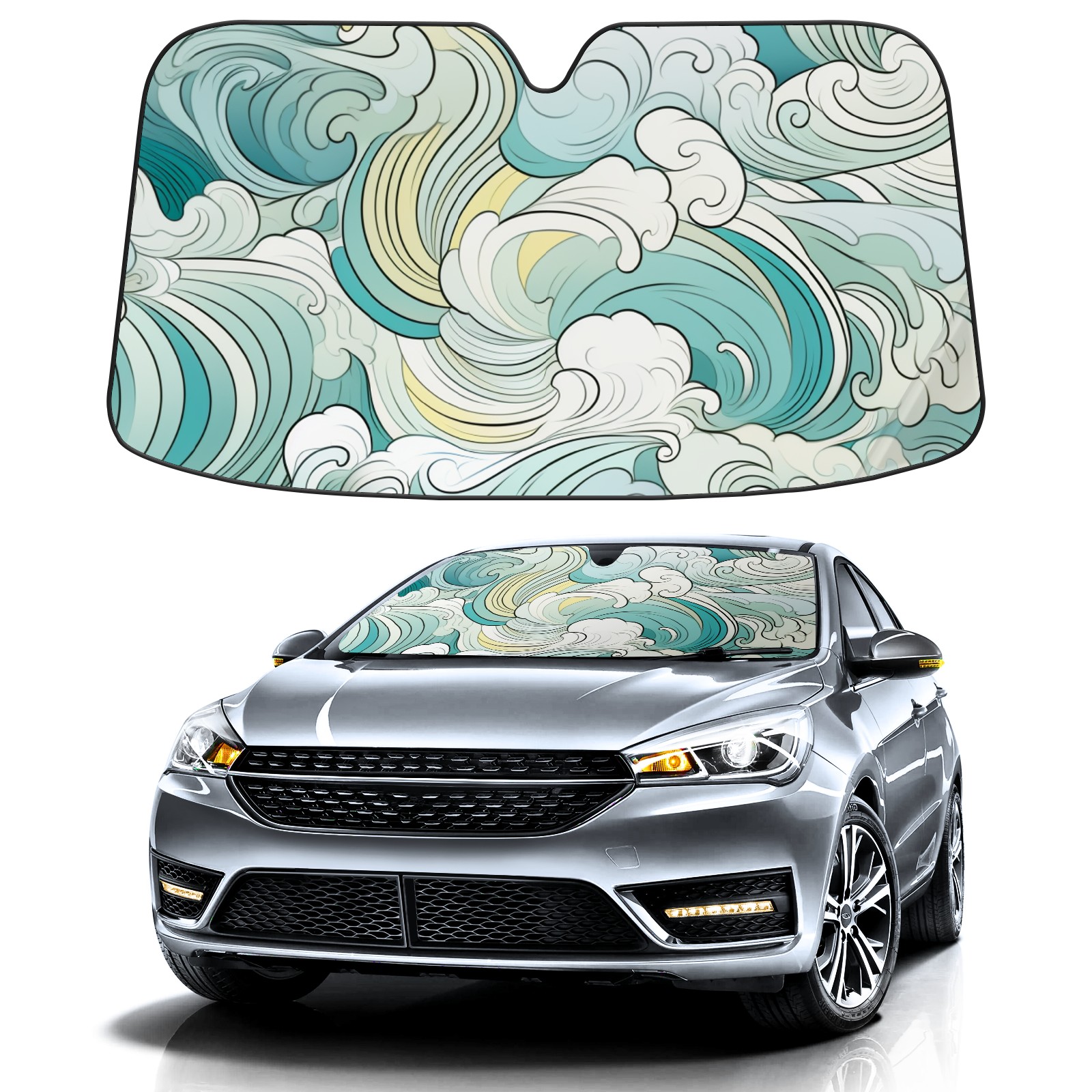 • Diameter /Size 63"L x 33.5"W Made from excellent materials which makes it sturdy and protects the car from the sun. Easy to use and pack. Makes the interior of the car cooler.You can easily stash the sunshade in the storage bag or store long term.It open and closes easy. Also the leather storage bag is durable and easy to put the umbrella back into.This windshield sunshade provides complete coverage and keeps your car interior cool under direct sun. It is easy to open and position under the windshield and around the rear-view mirror. Makes Your Car Easy To Identify, Perfect For Finding Your Car In Crowded Parking Lots And Garages.Great Choice: It Is A Great Gift For Dad, Boyfriend, Brother, Brother And Uncle, Friends, Classmates, Family And So On. Notice: Due To Difference Computer Monitors, The Color Maybe Slightly Different From Picture. As Different Measurement Methods, Measurement Data Will Float Within 2%.I Hope You Understand. If You Have Any Question About The Item Please Do Not Hesitate To Contact Us Immediately And We Will Give You A Satisfactory Reply Within 24 Hours.