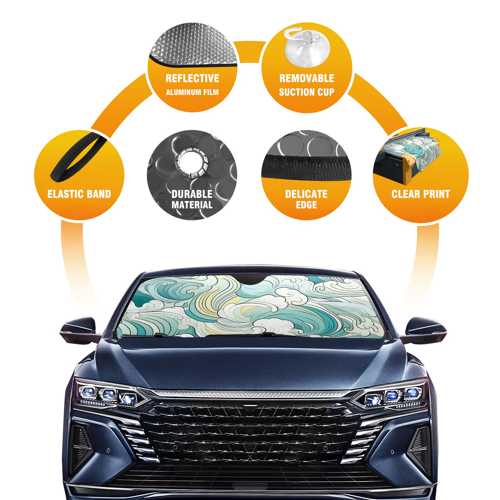 Diameter /Size 63"L x 33.5"W Made from excellent materials which makes it sturdy and protects the car from the sun. Easy to use and pack. Makes the interior of the car cooler.You can easily stash the sunshade in the storage bag or store long term.It open and closes easy. Also the leather storage bag is durable and easy to put the umbrella back into.This windshield sunshade provides complete coverage and keeps your car interior cool under direct sun. It is easy to open and position under the windshield and around the rear-view mirror. Makes Your Car Easy To Identify, Perfect For Finding Your Car In Crowded Parking Lots And Garages.Great Choice: It Is A Great Gift For Dad, Boyfriend, Brother, Brother And Uncle, Friends, Classmates, Family And So On. Notice: Due To Difference Computer Monitors, The Color Maybe Slightly Different From Picture. As Different Measurement Methods, Measurement Data Will Float Within 2%.I Hope You Understand. If You Have Any Question About The Item Please Do Not Hesitate To Contact Us Immediately And We Will Give You A Satisfactory Reply Within 24 Hours.