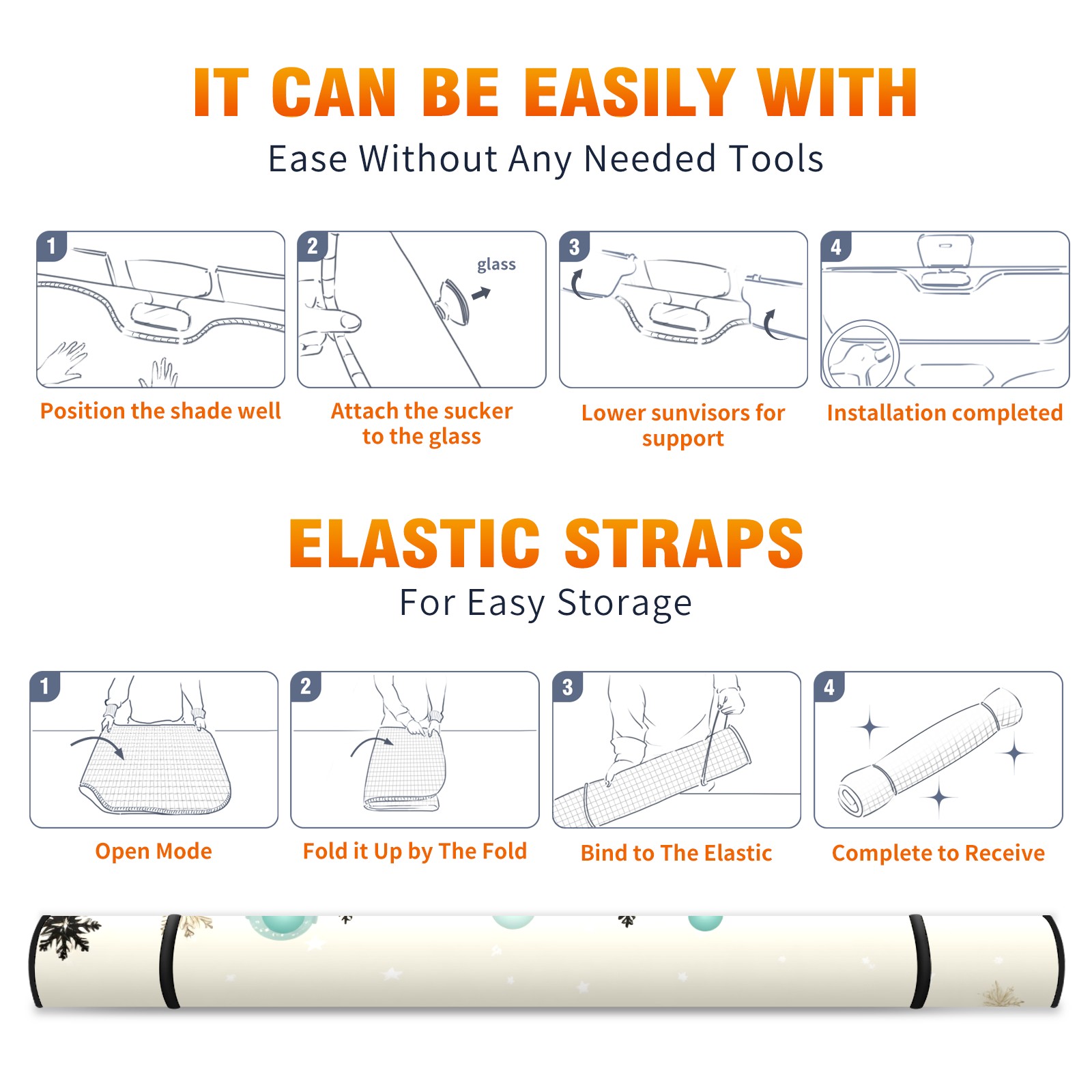• Diameter /Size 63"L x 33.5"W Made from excellent materials which makes it sturdy and protects the car from the sun. Easy to use and pack. Makes the interior of the car cooler.You can easily stash the sunshade in the storage bag or store long term.It open and closes easy. Also the leather storage bag is durable and easy to put the umbrella back into.This windshield sunshade provides complete coverage and keeps your car interior cool under direct sun. It is easy to open and position under the windshield and around the rear-view mirror. Makes Your Car Easy To Identify, Perfect For Finding Your Car In Crowded Parking Lots And Garages.Great Choice: It Is A Great Gift For Dad, Boyfriend, Brother, Brother And Uncle, Friends, Classmates, Family And So On. Notice: Due To Difference Computer Monitors, The Color Maybe Slightly Different From Picture. As Different Measurement Methods, Measurement Data Will Float Within 2%.I Hope You Understand. If You Have Any Question About The Item Please Do Not Hesitate To Contact Us Immediately And We Will Give You A Satisfactory Reply Within 24 Hours.