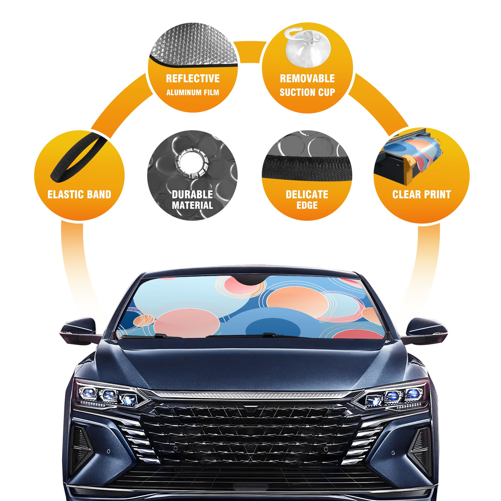 Car Windshield Sun Shade For Front Window Colorful Circles (6) Foldable Vehicle Windshield Car Sun Visor Covers Automotive Window Protector Car Camping Privacy Sun Blocker
