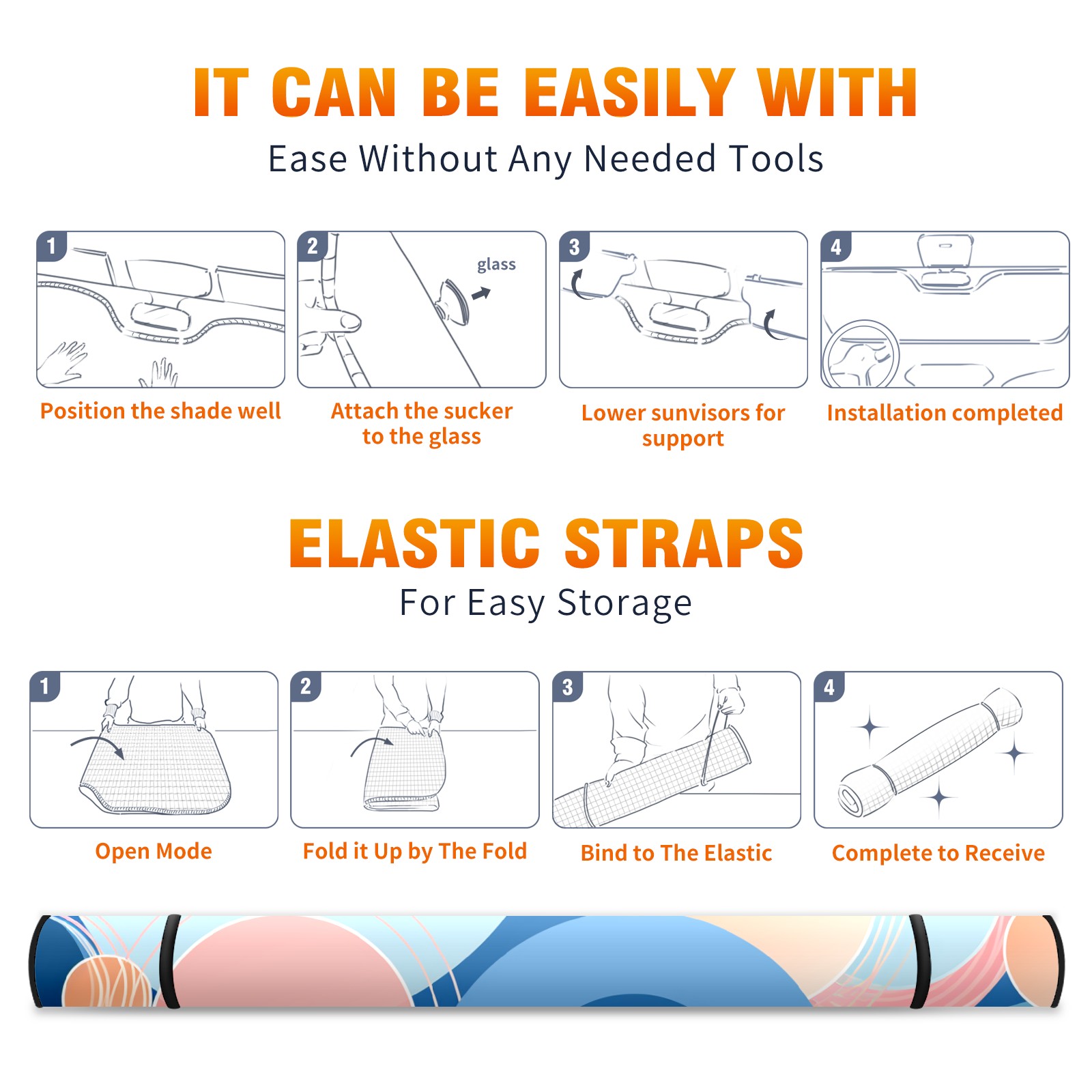 • Diameter /Size 63"L x 33.5"W Made from excellent materials which makes it sturdy and protects the car from the sun. Easy to use and pack. Makes the interior of the car cooler.You can easily stash the sunshade in the storage bag or store long term.It open and closes easy. Also the leather storage bag is durable and easy to put the umbrella back into.This windshield sunshade provides complete coverage and keeps your car interior cool under direct sun. It is easy to open and position under the windshield and around the rear-view mirror. Makes Your Car Easy To Identify, Perfect For Finding Your Car In Crowded Parking Lots And Garages.Great Choice: It Is A Great Gift For Dad, Boyfriend, Brother, Brother And Uncle, Friends, Classmates, Family And So On. Notice: Due To Difference Computer Monitors, The Color Maybe Slightly Different From Picture. As Different Measurement Methods, Measurement Data Will Float Within 2%.I Hope You Understand. If You Have Any Question About The Item Please Do Not Hesitate To Contact Us Immediately And We Will Give You A Satisfactory Reply Within 24 Hours.