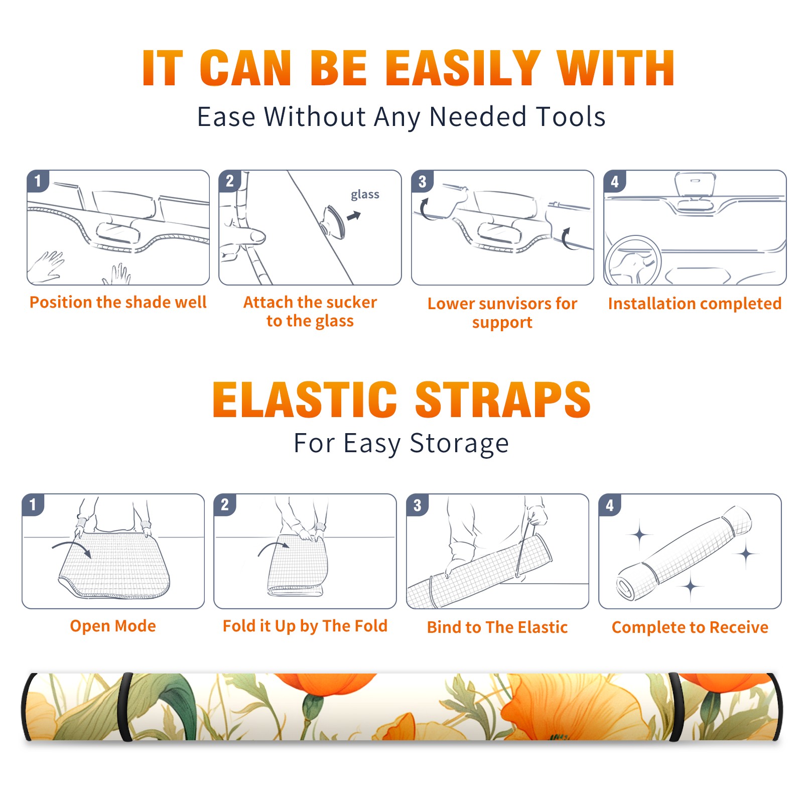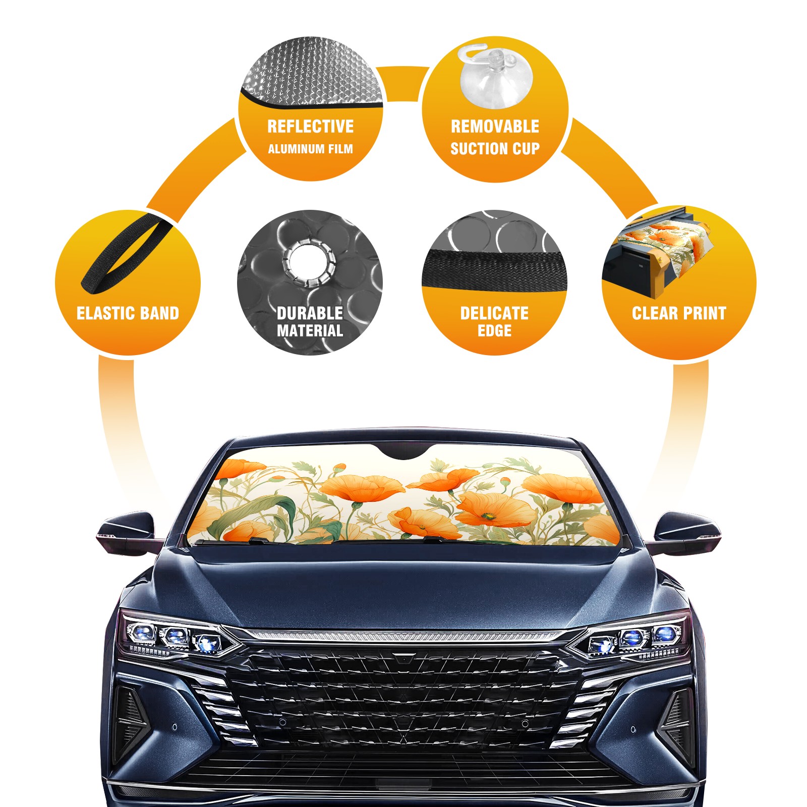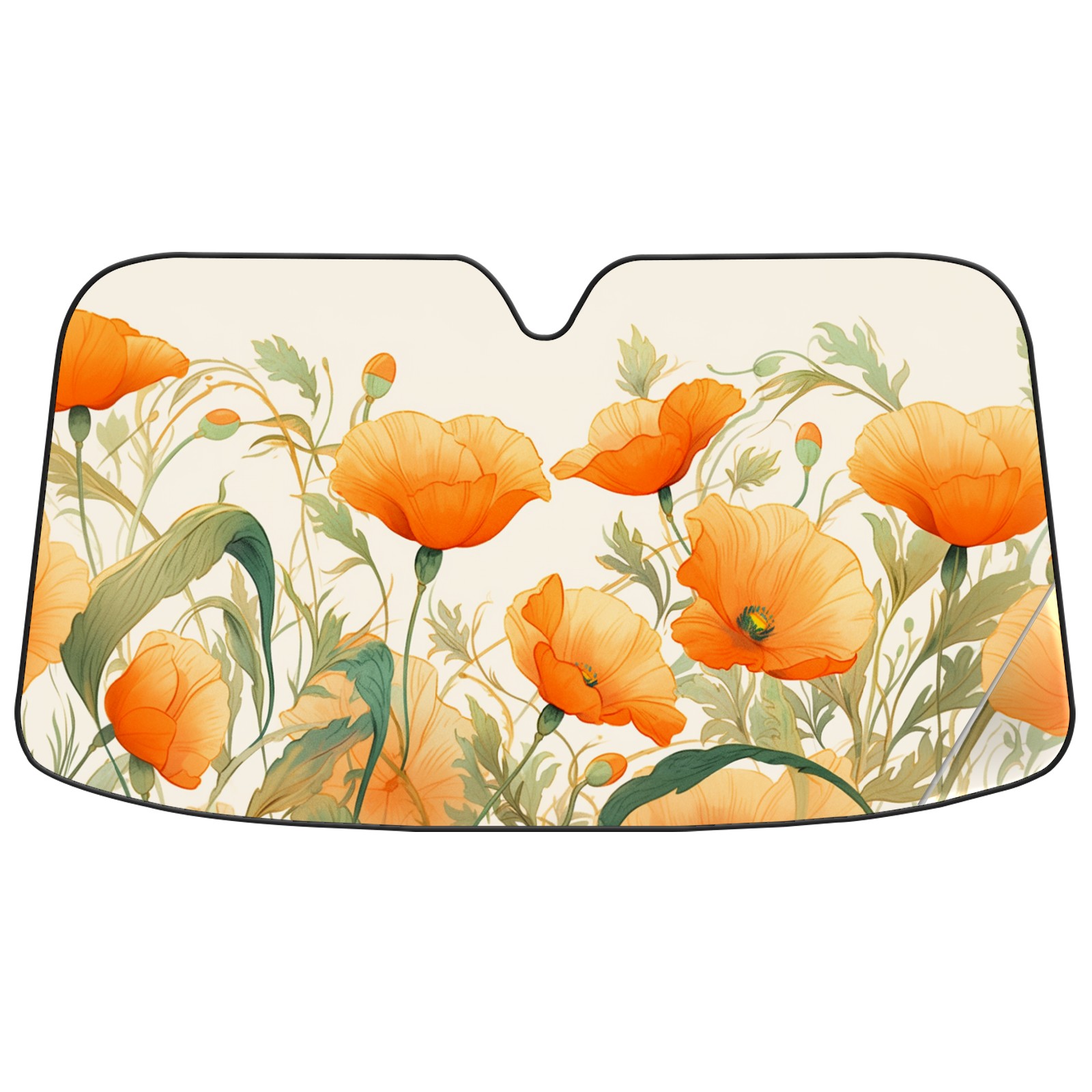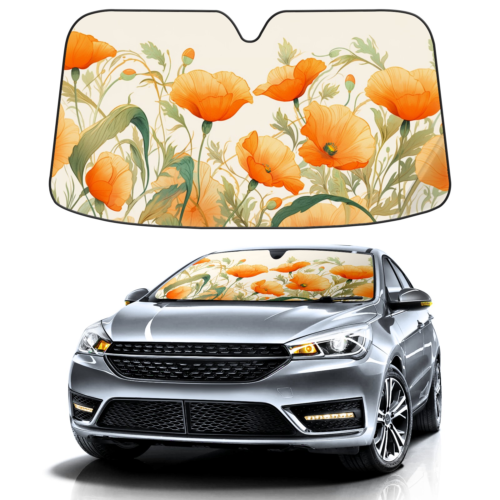 Car Windshield Sun Shade For Front Window Orange Poppies With Watercolor Foldable Vehicle Windshield Car Sun Visor Covers Automotive Window Protector Car Camping Privacy Sun Blocker