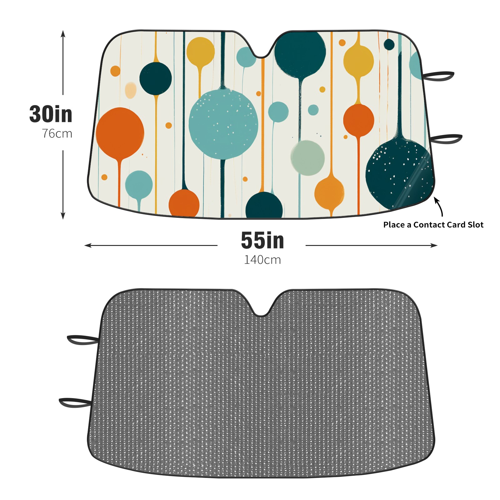 Diameter /Size 63"L x 33.5"W Made from excellent materials which makes it sturdy and protects the car from the sun. Easy to use and pack. Makes the interior of the car cooler.You can easily stash the sunshade in the storage bag or store long term.It open and closes easy. Also the leather storage bag is durable and easy to put the umbrella back into.This windshield sunshade provides complete coverage and keeps your car interior cool under direct sun. It is easy to open and position under the windshield and around the rear-view mirror. Makes Your Car Easy To Identify, Perfect For Finding Your Car In Crowded Parking Lots And Garages.Great Choice: It Is A Great Gift For Dad, Boyfriend, Brother, Brother And Uncle, Friends, Classmates, Family And So On. Notice: Due To Difference Computer Monitors, The Color Maybe Slightly Different From Picture. As Different Measurement Methods, Measurement Data Will Float Within 2%.I Hope You Understand. If You Have Any Question About The Item Please Do Not Hesitate To Contact Us Immediately And We Will Give You A Satisfactory Reply Within 24 Hours.