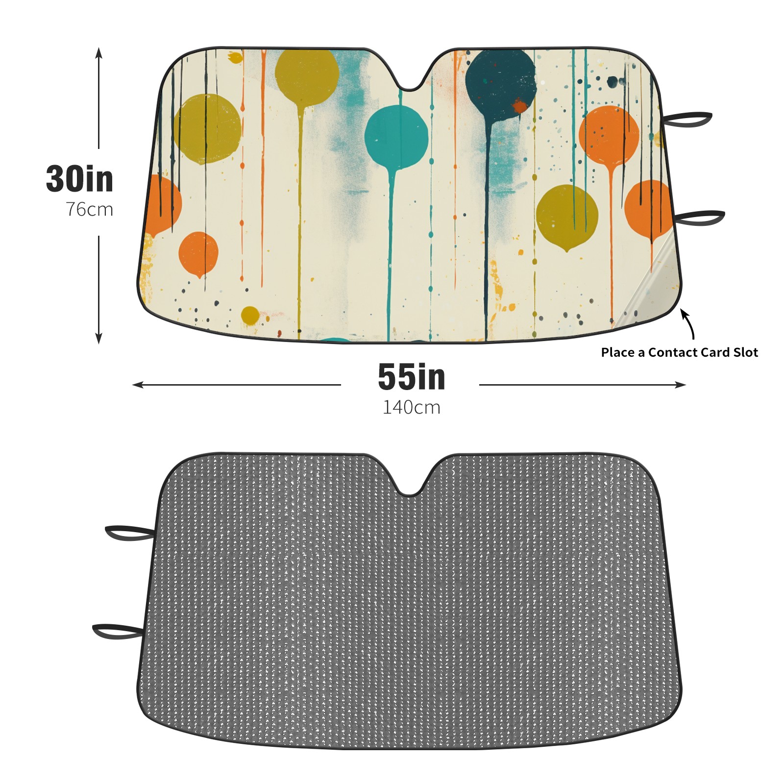 Diameter /Size 63"L x 33.5"W Made from excellent materials which makes it sturdy and protects the car from the sun. Easy to use and pack. Makes the interior of the car cooler.You can easily stash the sunshade in the storage bag or store long term.It open and closes easy. Also the leather storage bag is durable and easy to put the umbrella back into.This windshield sunshade provides complete coverage and keeps your car interior cool under direct sun. It is easy to open and position under the windshield and around the rear-view mirror. Makes Your Car Easy To Identify, Perfect For Finding Your Car In Crowded Parking Lots And Garages.Great Choice: It Is A Great Gift For Dad, Boyfriend, Brother, Brother And Uncle, Friends, Classmates, Family And So On. Notice: Due To Difference Computer Monitors, The Color Maybe Slightly Different From Picture. As Different Measurement Methods, Measurement Data Will Float Within 2%.I Hope You Understand. If You Have Any Question About The Item Please Do Not Hesitate To Contact Us Immediately And We Will Give You A Satisfactory Reply Within 24 Hours.