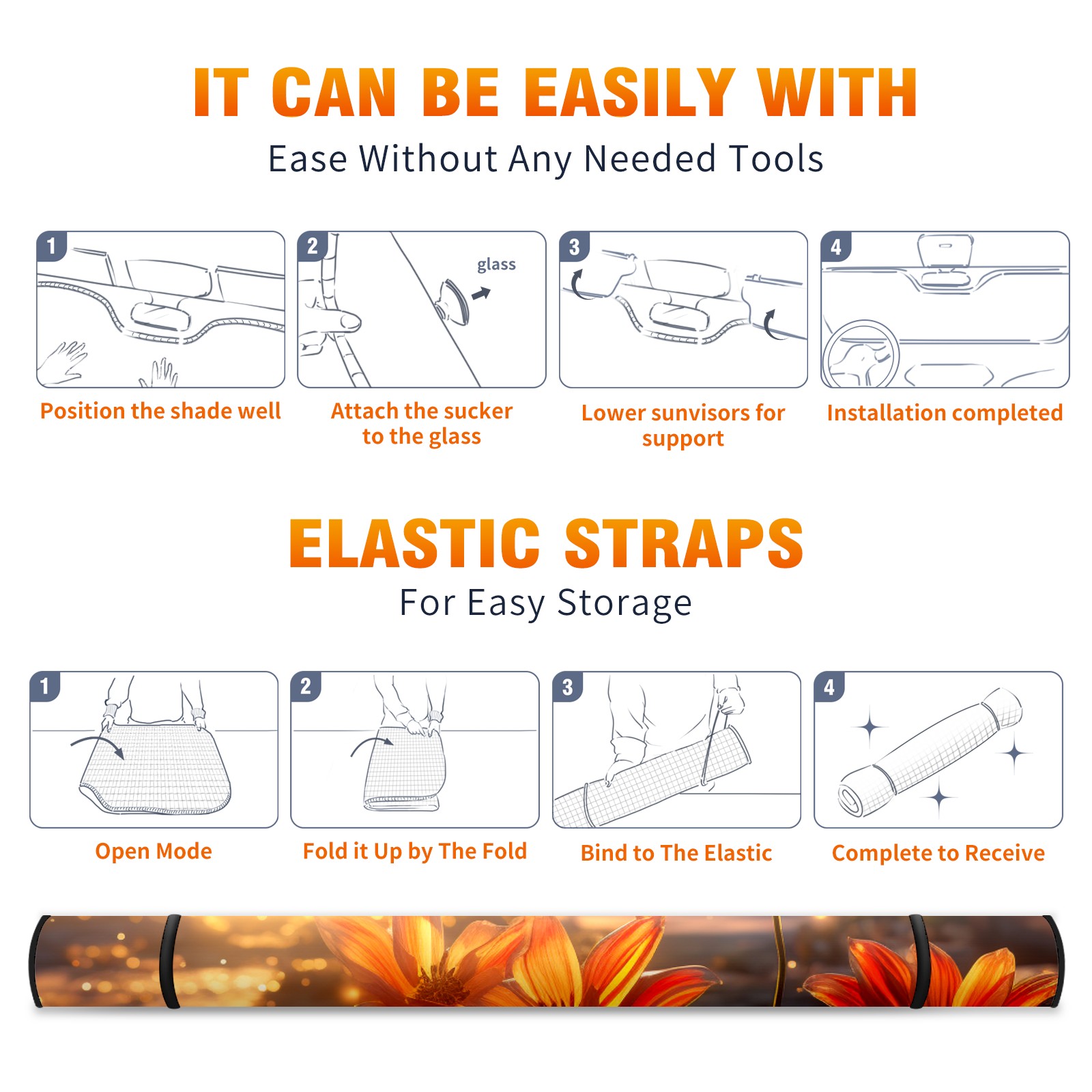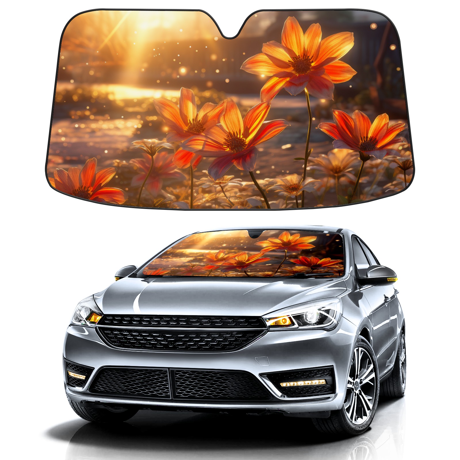 Car Windshield Sun Shade For Front Window Flowers (29) Foldable Vehicle Windshield Car Sun Visor Covers Automotive Window Protector Car Camping Privacy Sun Blocker
