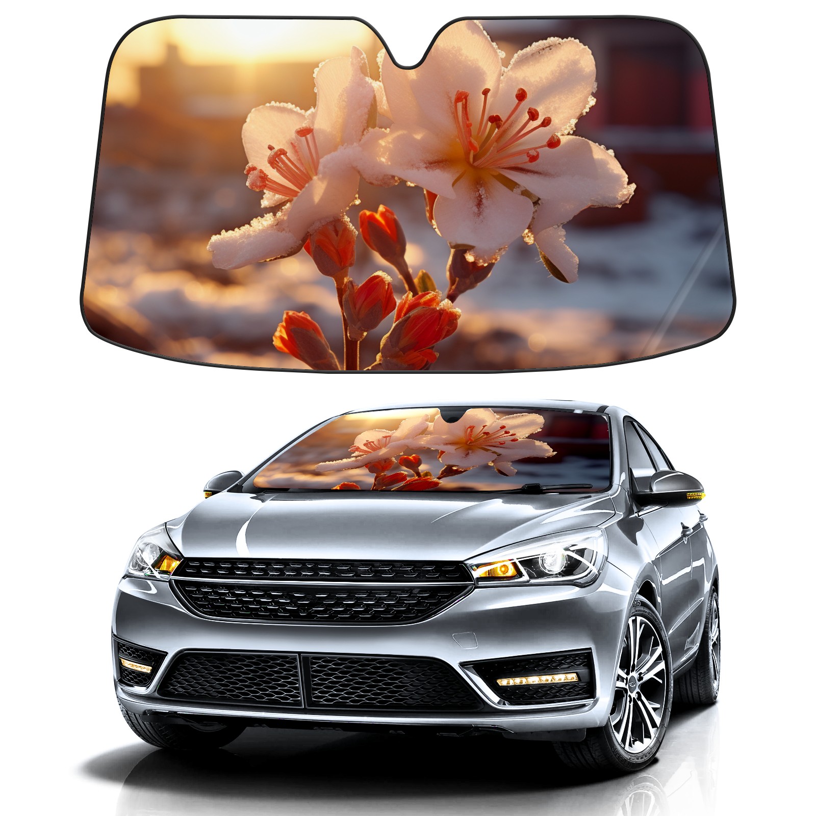 Car Windshield Sun Shade For Front Window Flowers (27) Foldable Vehicle Windshield Car Sun Visor Covers Automotive Window Protector Car Camping Privacy Sun Blocker
