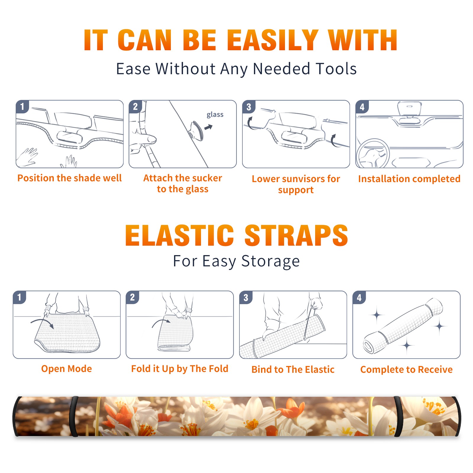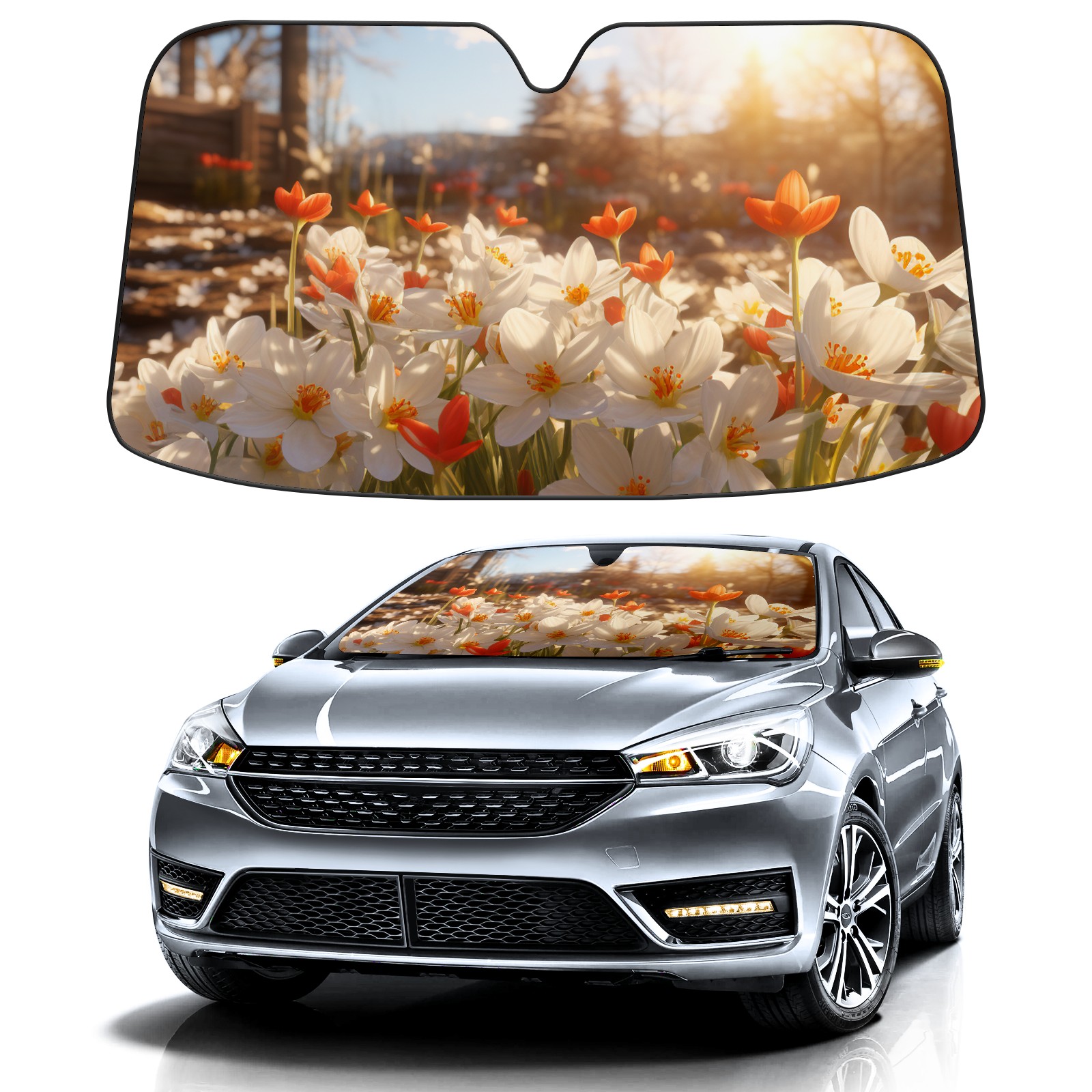 Car Windshield Sun Shade For Front Window Flowers (25) Foldable Vehicle Windshield Car Sun Visor Covers Automotive Window Protector Car Camping Privacy Sun Blocker