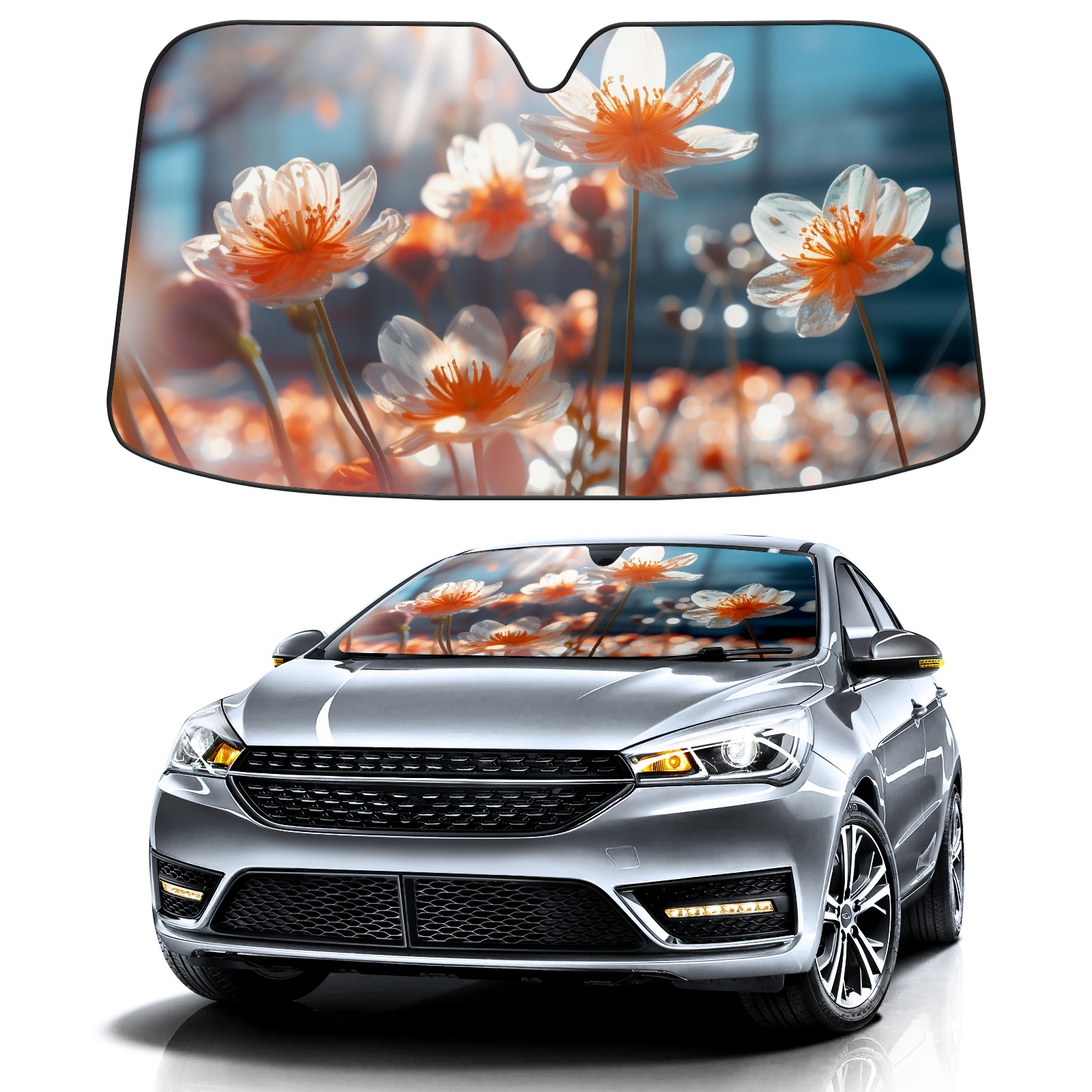 Car Windshield Sun Shade For Front Window Flowers (20) Foldable Vehicle Windshield Car Sun Visor Covers Automotive Window Protector Car Camping Privacy Sun Blocker