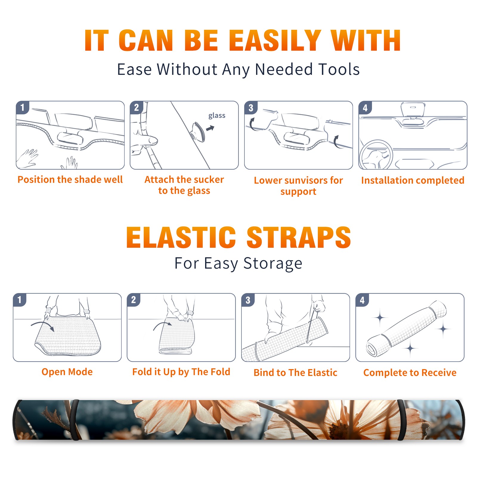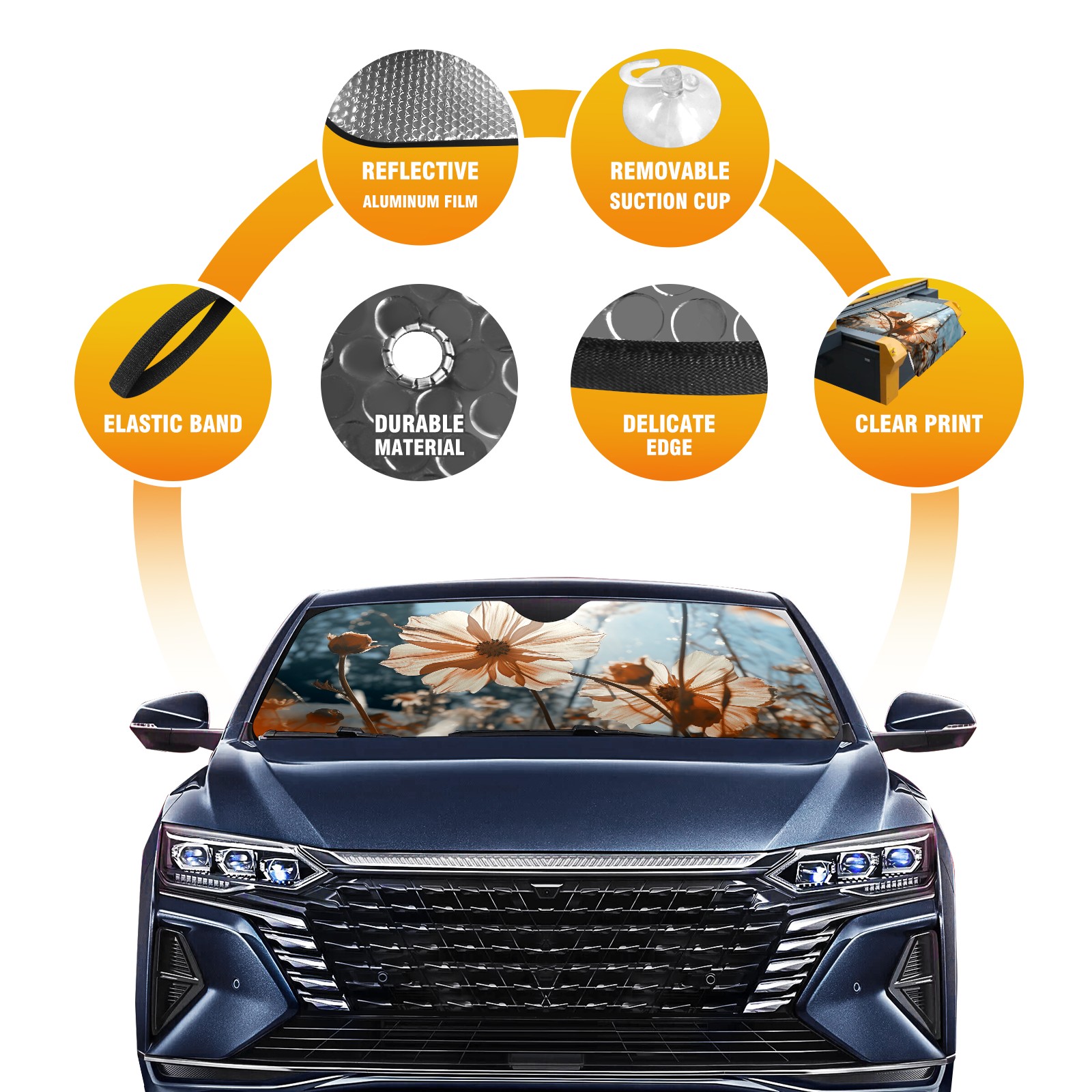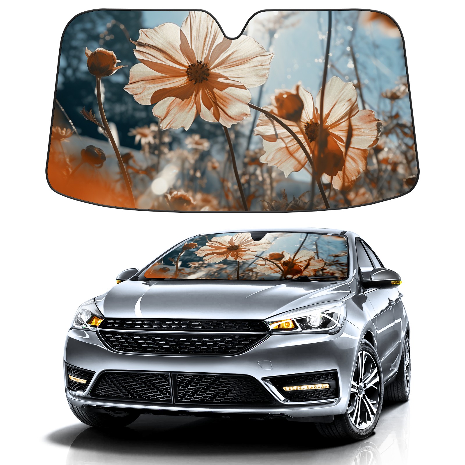Car Windshield Sun Shade For Front Window Flowers (16) Foldable Vehicle Windshield Car Sun Visor Covers Automotive Window Protector Car Camping Privacy Sun Blocker