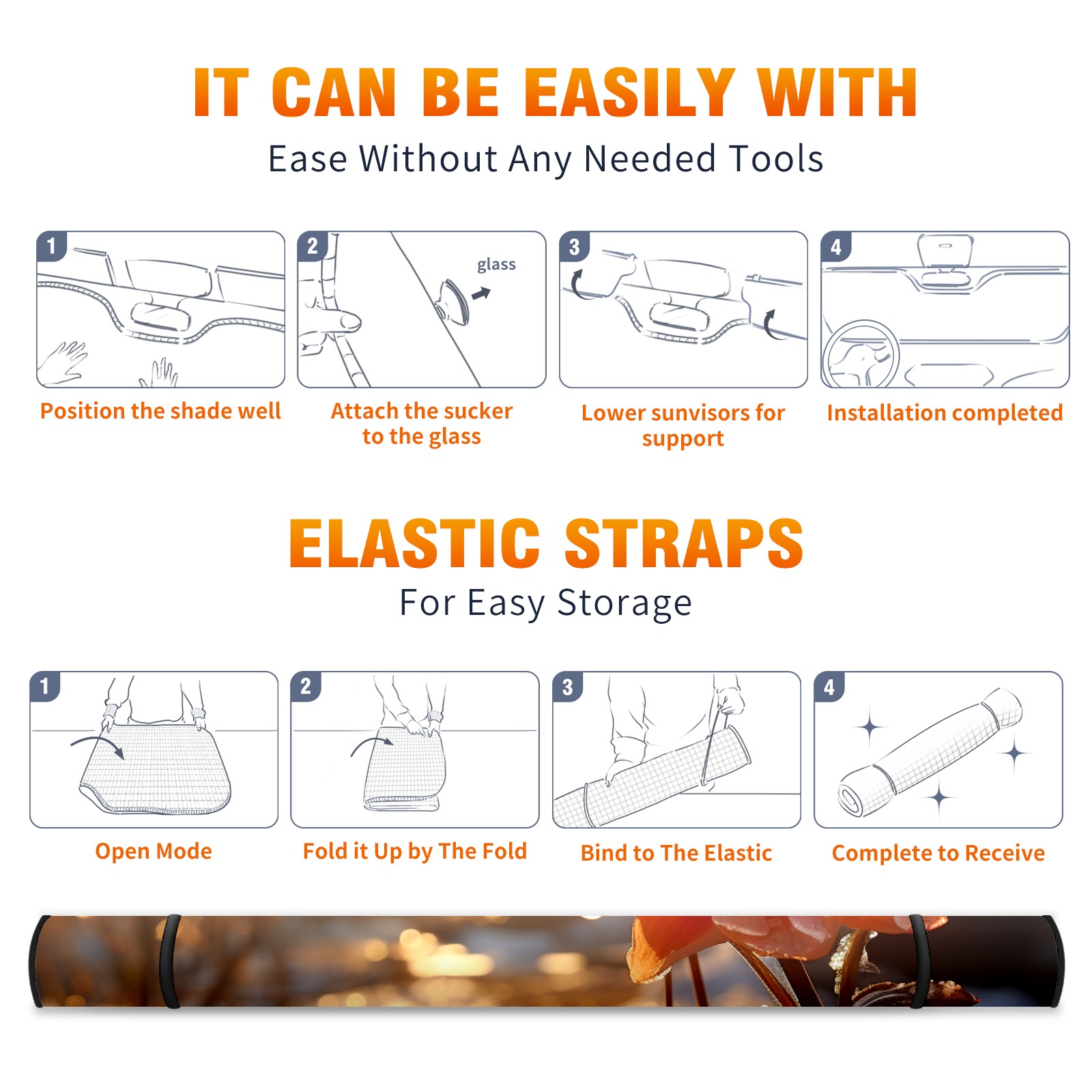 • Diameter /Size 63"L x 33.5"W Made from excellent materials which makes it sturdy and protects the car from the sun. Easy to use and pack. Makes the interior of the car cooler.You can easily stash the sunshade in the storage bag or store long term.It open and closes easy. Also the leather storage bag is durable and easy to put the umbrella back into.This windshield sunshade provides complete coverage and keeps your car interior cool under direct sun. It is easy to open and position under the windshield and around the rear-view mirror. Makes Your Car Easy To Identify, Perfect For Finding Your Car In Crowded Parking Lots And Garages.Great Choice: It Is A Great Gift For Dad, Boyfriend, Brother, Brother And Uncle, Friends, Classmates, Family And So On. Notice: Due To Difference Computer Monitors, The Color Maybe Slightly Different From Picture. As Different Measurement Methods, Measurement Data Will Float Within 2%.I Hope You Understand. If You Have Any Question About The Item Please Do Not Hesitate To Contact Us Immediately And We Will Give You A Satisfactory Reply Within 24 Hours.