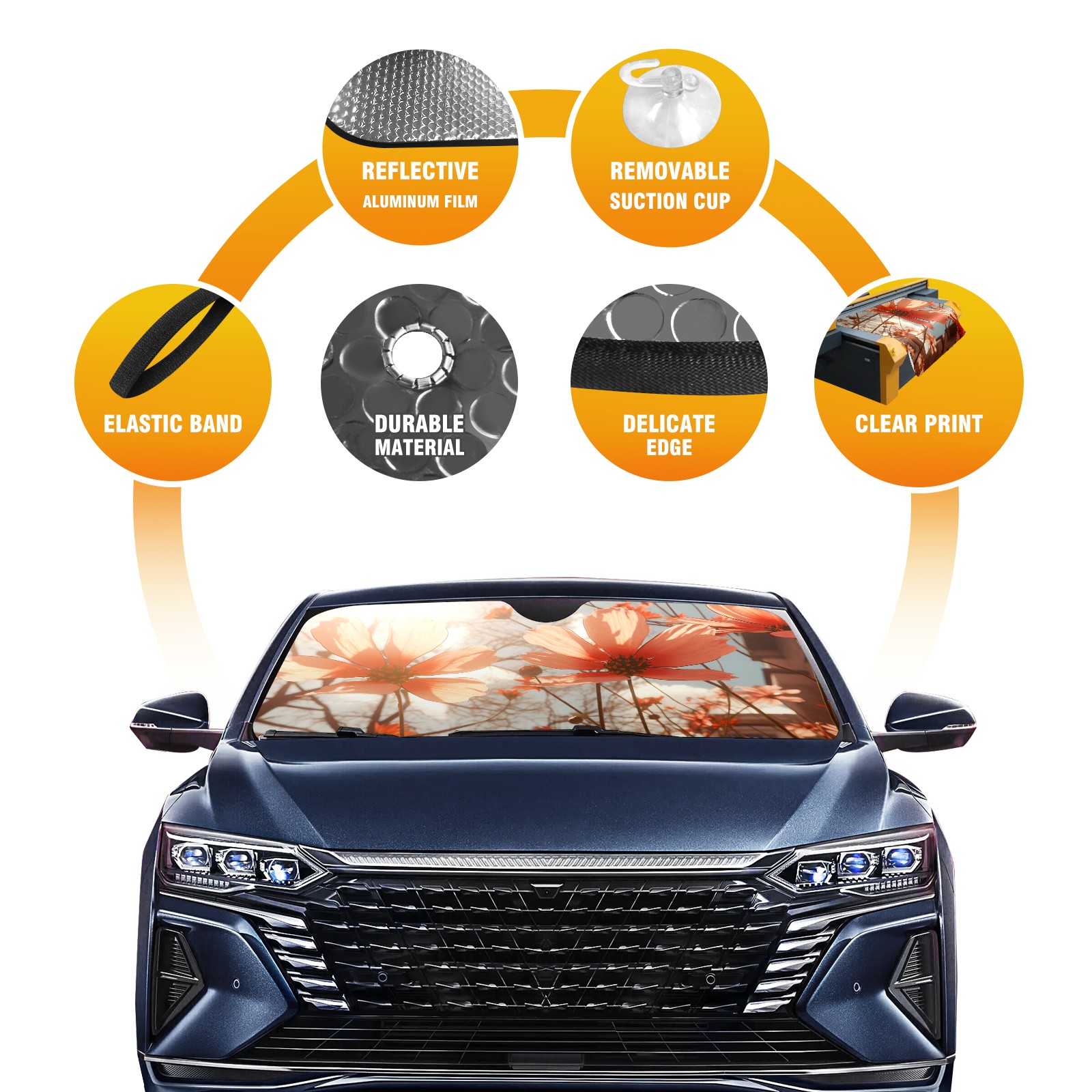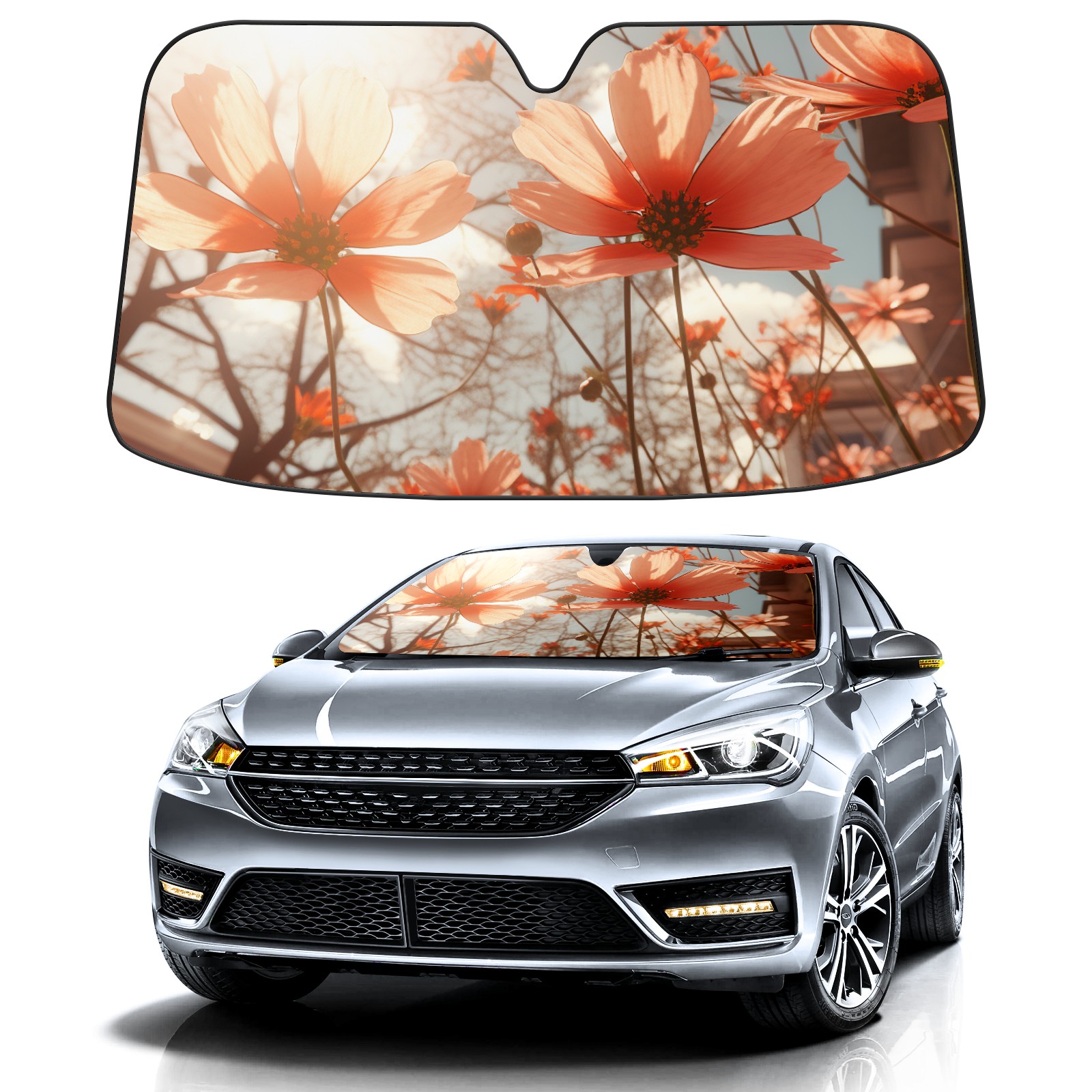 Car Windshield Sun Shade For Front Window Flowers (13) Foldable Vehicle Windshield Car Sun Visor Covers Automotive Window Protector Car Camping Privacy Sun Blocker