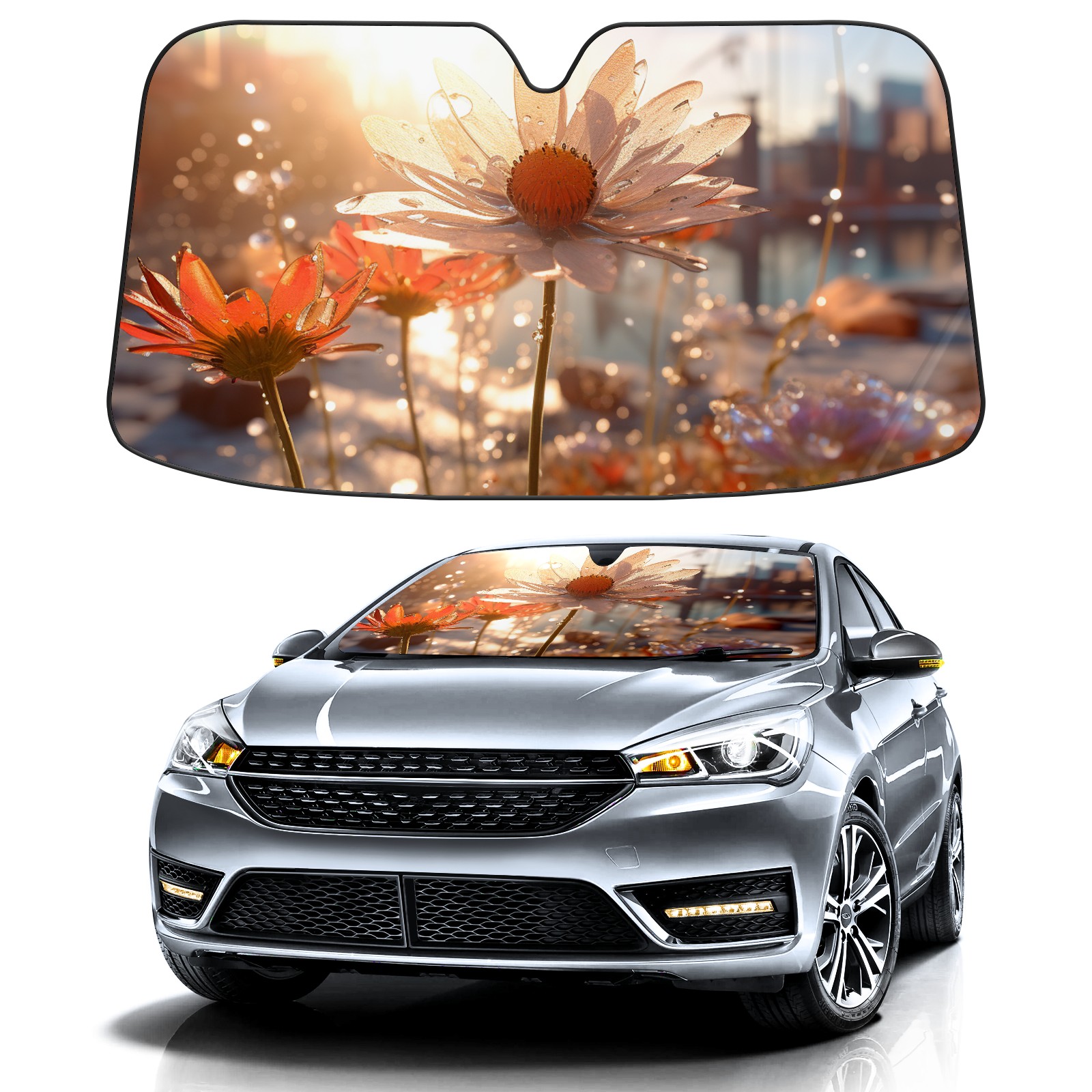Car Windshield Sun Shade For Front Window Flowers (12) Foldable Vehicle Windshield Car Sun Visor Covers Automotive Window Protector Car Camping Privacy Sun Blocker