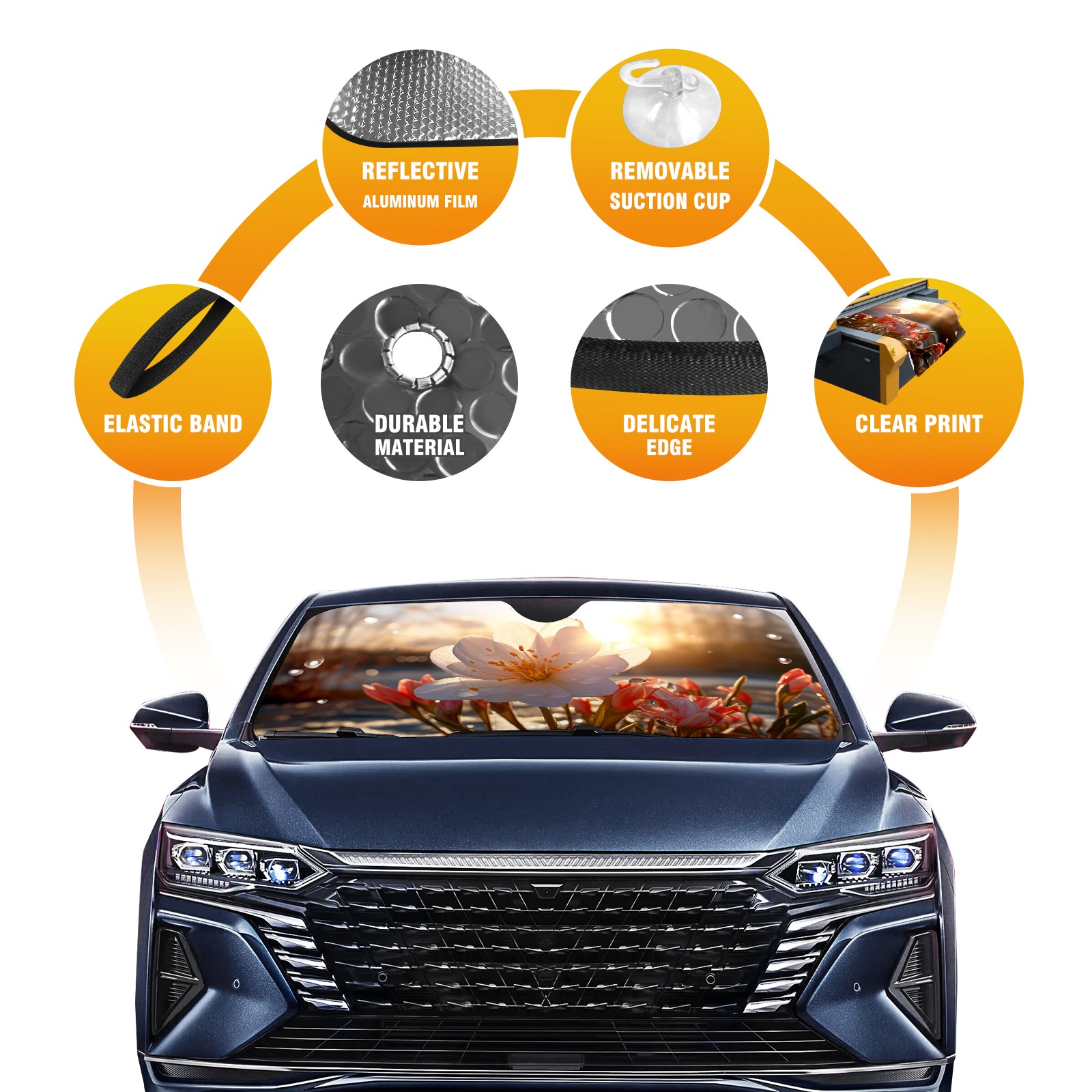 Car Windshield Sun Shade For Front Window Flowers (11) Foldable Vehicle Windshield Car Sun Visor Covers Automotive Window Protector Car Camping Privacy Sun Blocker