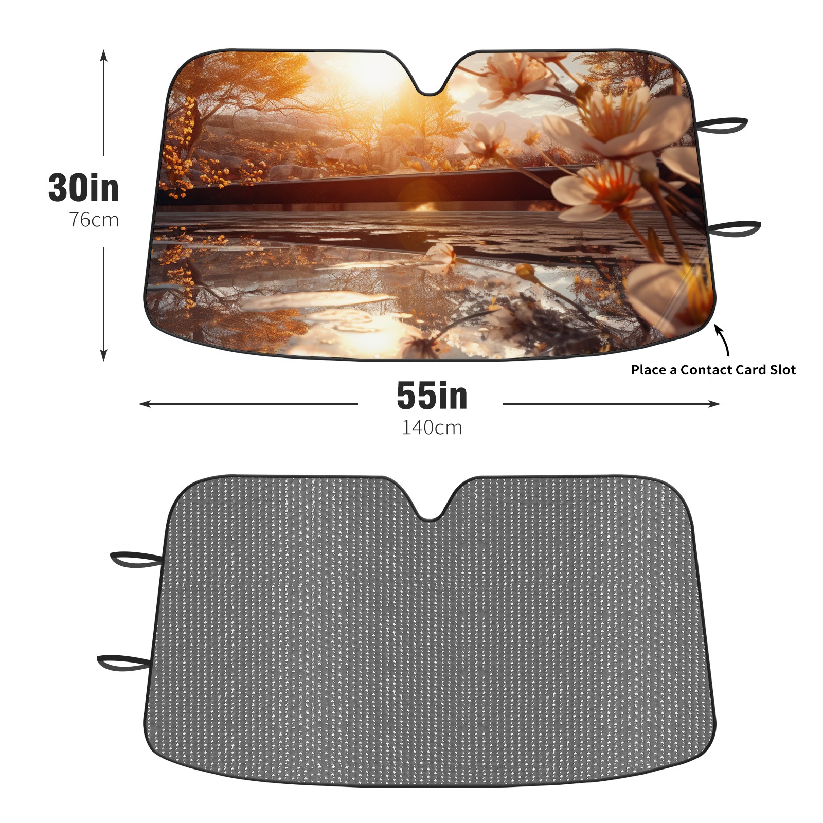 Diameter /Size 63"L x 33.5"W Made from excellent materials which makes it sturdy and protects the car from the sun. Easy to use and pack. Makes the interior of the car cooler.You can easily stash the sunshade in the storage bag or store long term.It open and closes easy. Also the leather storage bag is durable and easy to put the umbrella back into.This windshield sunshade provides complete coverage and keeps your car interior cool under direct sun. It is easy to open and position under the windshield and around the rear-view mirror. Makes Your Car Easy To Identify, Perfect For Finding Your Car In Crowded Parking Lots And Garages.Great Choice: It Is A Great Gift For Dad, Boyfriend, Brother, Brother And Uncle, Friends, Classmates, Family And So On. Notice: Due To Difference Computer Monitors, The Color Maybe Slightly Different From Picture. As Different Measurement Methods, Measurement Data Will Float Within 2%.I Hope You Understand. If You Have Any Question About The Item Please Do Not Hesitate To Contact Us Immediately And We Will Give You A Satisfactory Reply Within 24 Hours.
