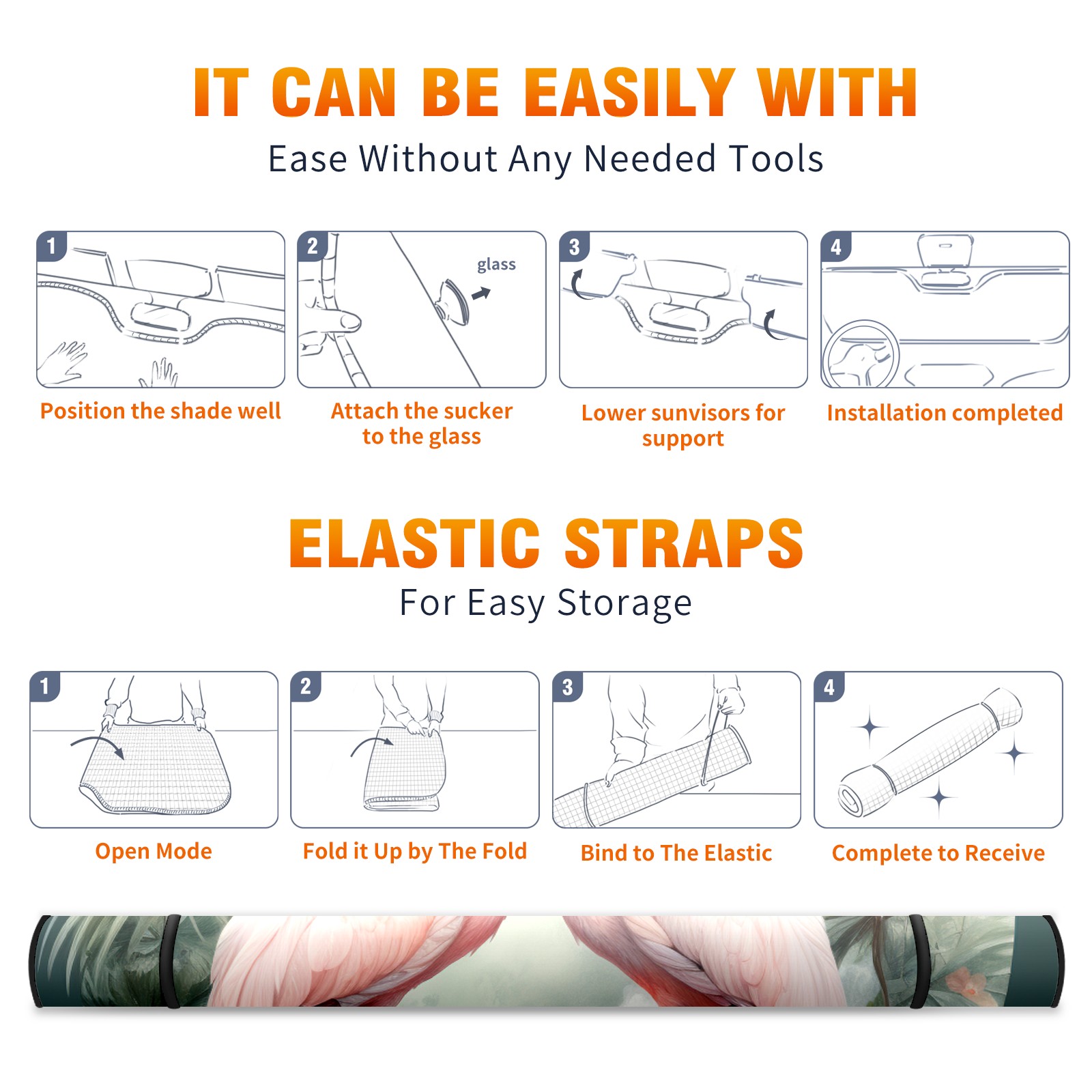 Car Windshield Sun Shade For Front Window Flamingos 40 Foldable Vehicle Windshield Car Sun Visor Covers Automotive Window Protector Car Camping Privacy Sun Blocker