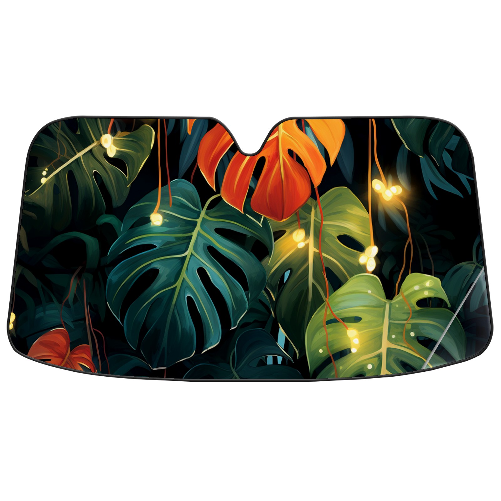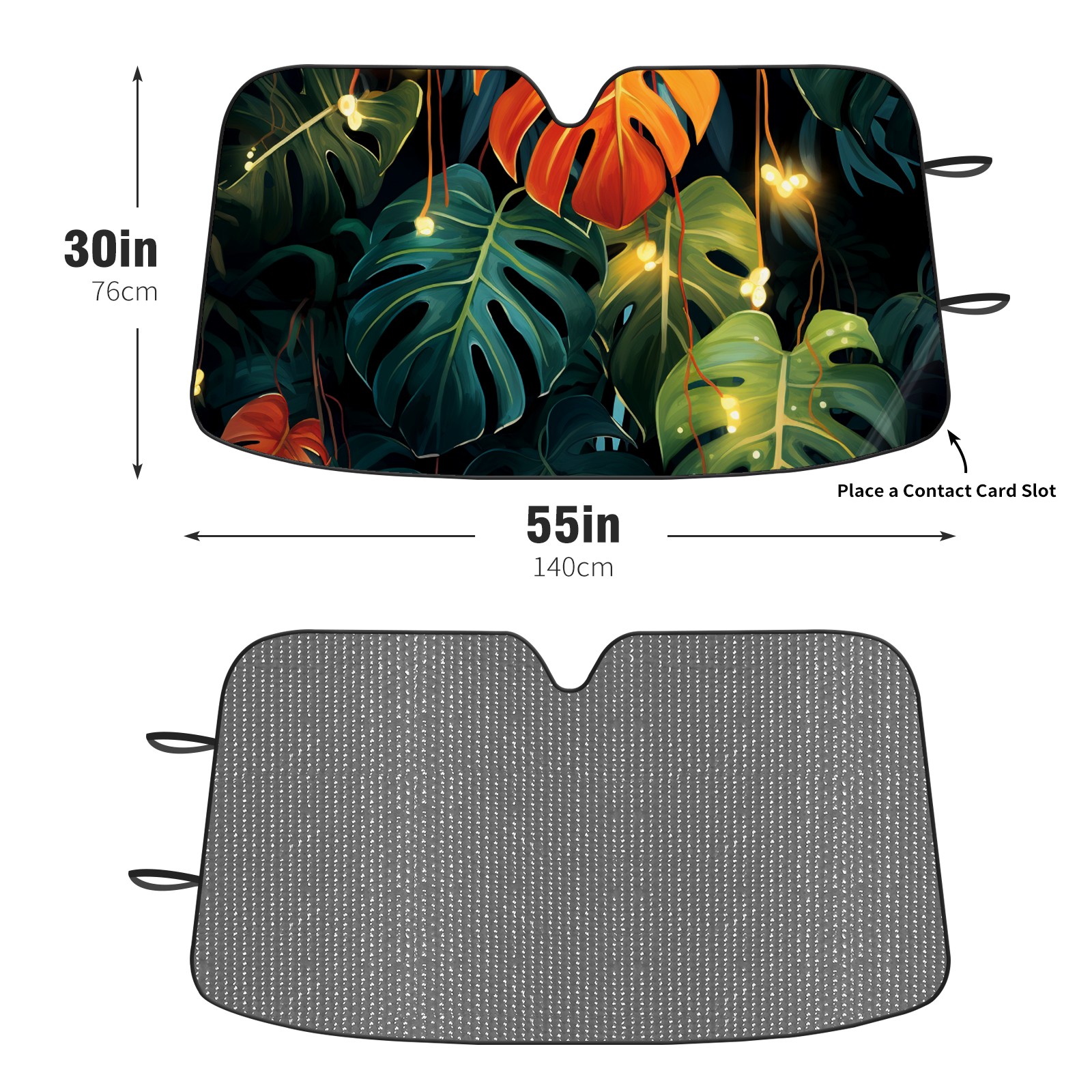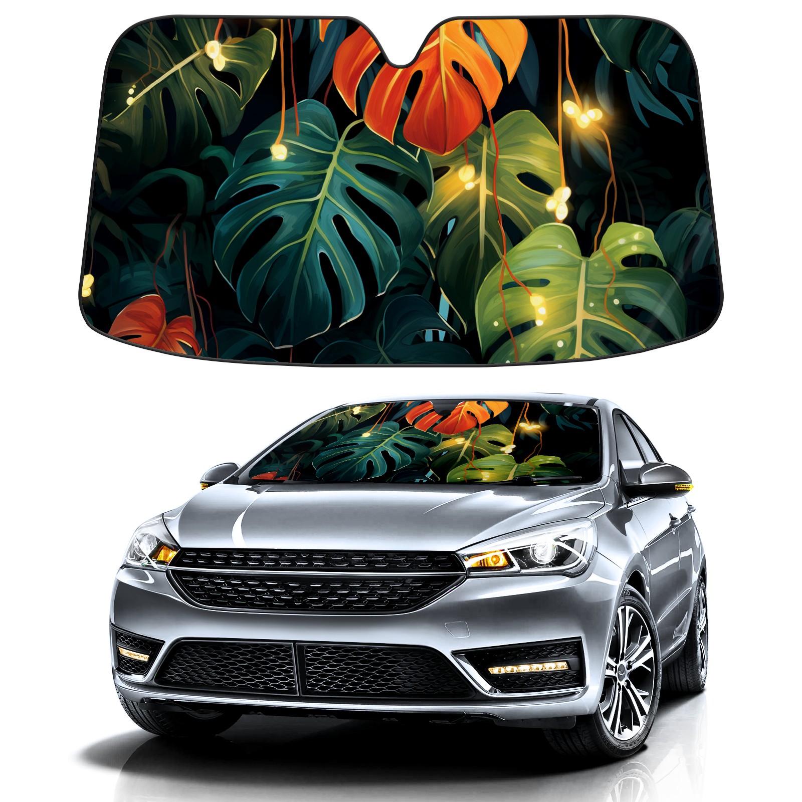Car Windshield Sun Shade For Front Window Tropical Plant Leaves 1 Foldable Vehicle Windshield Car Sun Visor Covers Automotive Window Protector Car Camping Privacy Sun Blocker