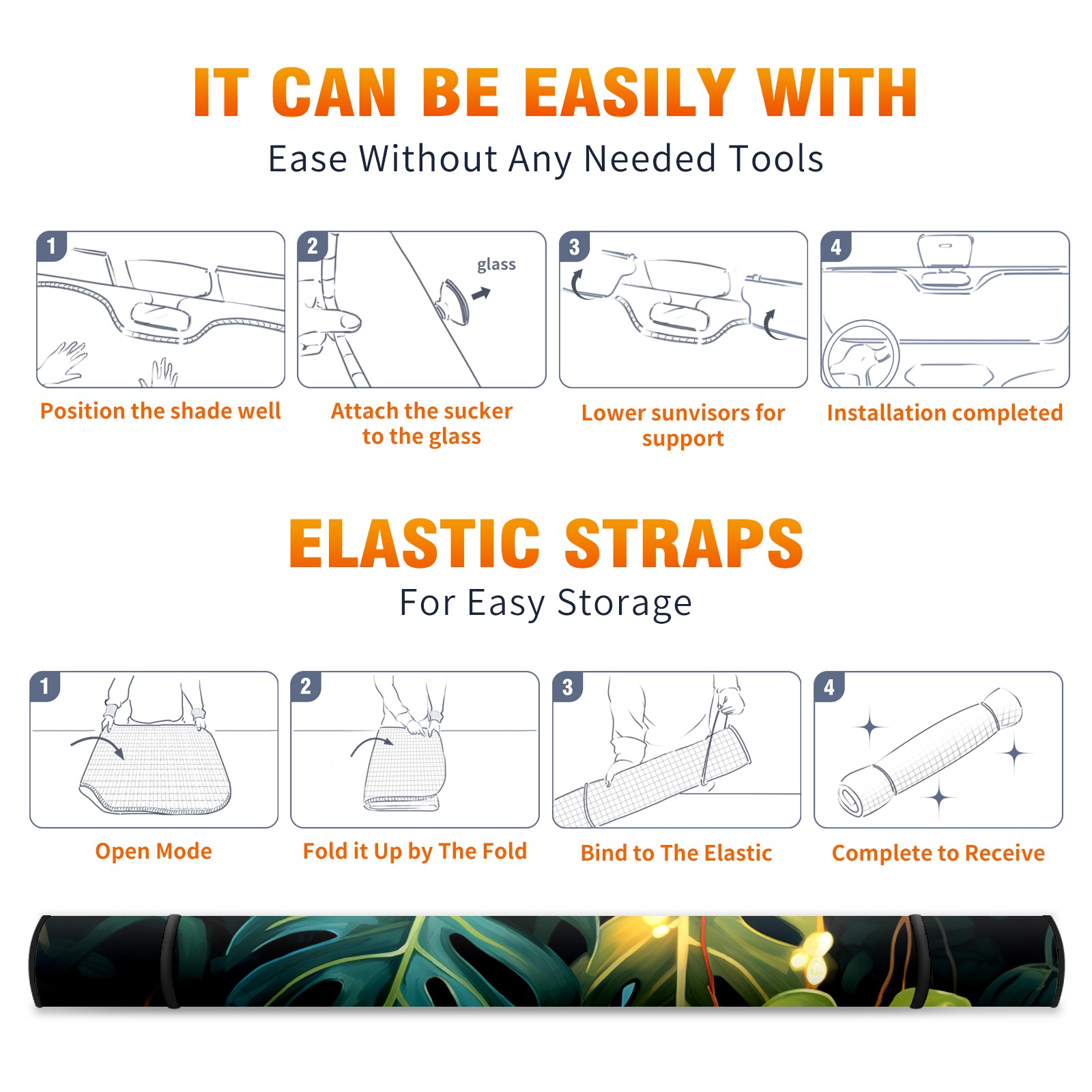 • Diameter /Size 63"L x 33.5"W Made from excellent materials which makes it sturdy and protects the car from the sun. Easy to use and pack. Makes the interior of the car cooler.You can easily stash the sunshade in the storage bag or store long term.It open and closes easy. Also the leather storage bag is durable and easy to put the umbrella back into.This windshield sunshade provides complete coverage and keeps your car interior cool under direct sun. It is easy to open and position under the windshield and around the rear-view mirror. Makes Your Car Easy To Identify, Perfect For Finding Your Car In Crowded Parking Lots And Garages.Great Choice: It Is A Great Gift For Dad, Boyfriend, Brother, Brother And Uncle, Friends, Classmates, Family And So On. Notice: Due To Difference Computer Monitors, The Color Maybe Slightly Different From Picture. As Different Measurement Methods, Measurement Data Will Float Within 2%.I Hope You Understand. If You Have Any Question About The Item Please Do Not Hesitate To Contact Us Immediately And We Will Give You A Satisfactory Reply Within 24 Hours.