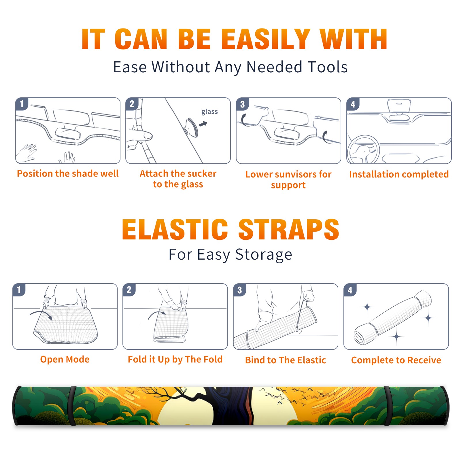 • Diameter /Size 63"L x 33.5"W Made from excellent materials which makes it sturdy and protects the car from the sun. Easy to use and pack. Makes the interior of the car cooler.You can easily stash the sunshade in the storage bag or store long term.It open and closes easy. Also the leather storage bag is durable and easy to put the umbrella back into.This windshield sunshade provides complete coverage and keeps your car interior cool under direct sun. It is easy to open and position under the windshield and around the rear-view mirror. Makes Your Car Easy To Identify, Perfect For Finding Your Car In Crowded Parking Lots And Garages.Great Choice: It Is A Great Gift For Dad, Boyfriend, Brother, Brother And Uncle, Friends, Classmates, Family And So On. Notice: Due To Difference Computer Monitors, The Color Maybe Slightly Different From Picture. As Different Measurement Methods, Measurement Data Will Float Within 2%.I Hope You Understand. If You Have Any Question About The Item Please Do Not Hesitate To Contact Us Immediately And We Will Give You A Satisfactory Reply Within 24 Hours.