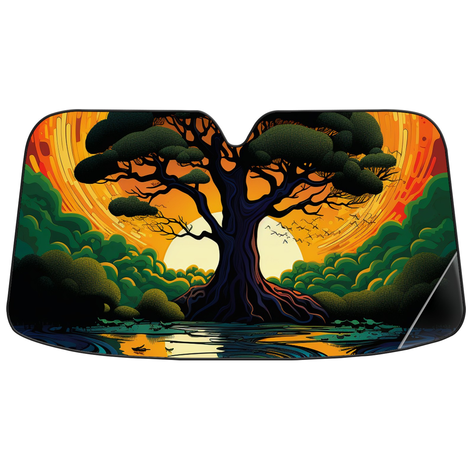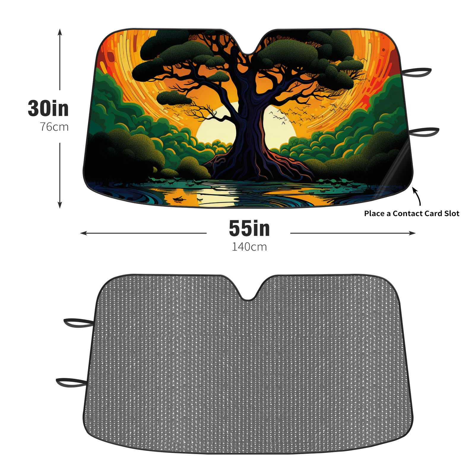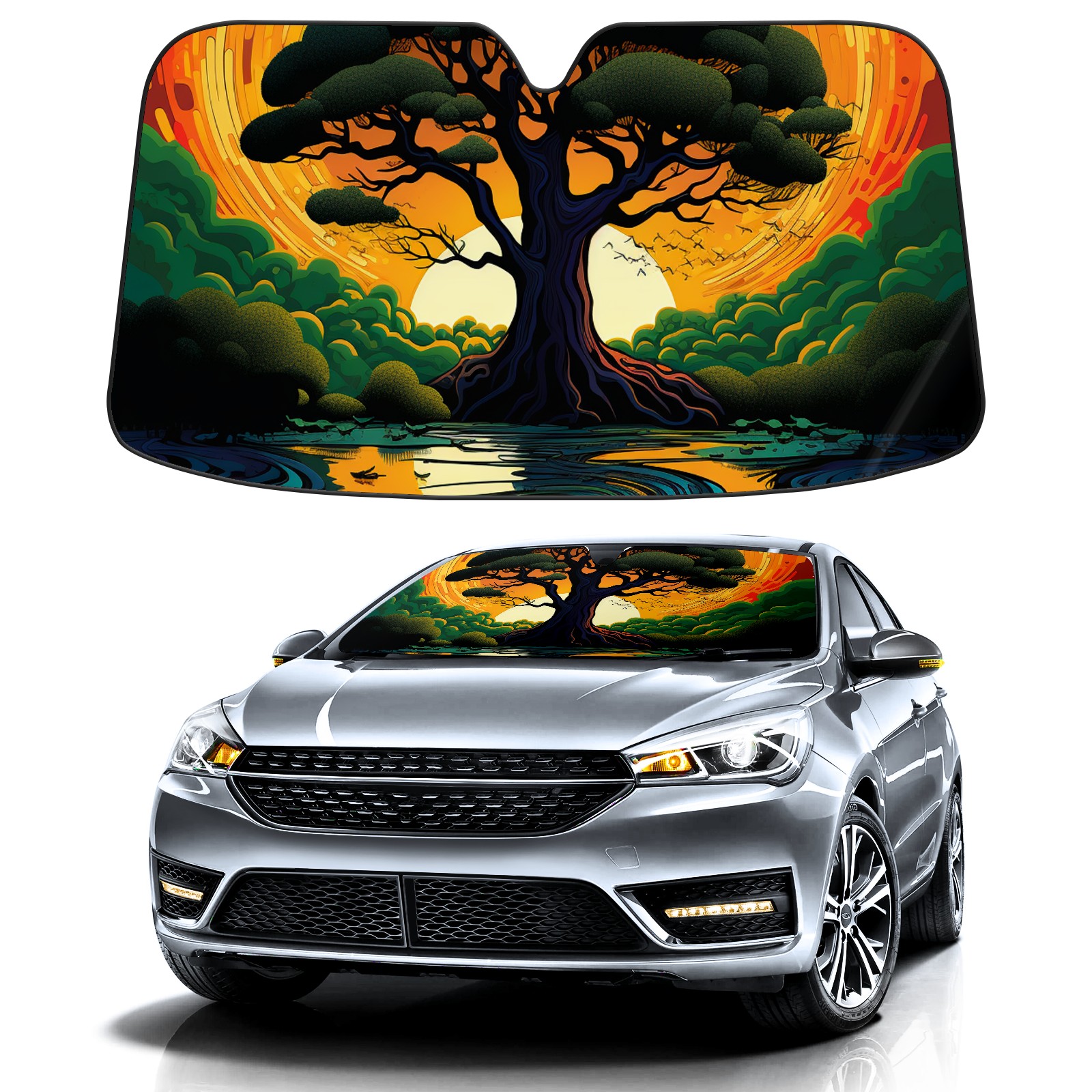 Car Windshield Sun Shade For Front Window Tree 9 Foldable Vehicle Windshield Car Sun Visor Covers Automotive Window Protector Car Camping Privacy Sun Blocker