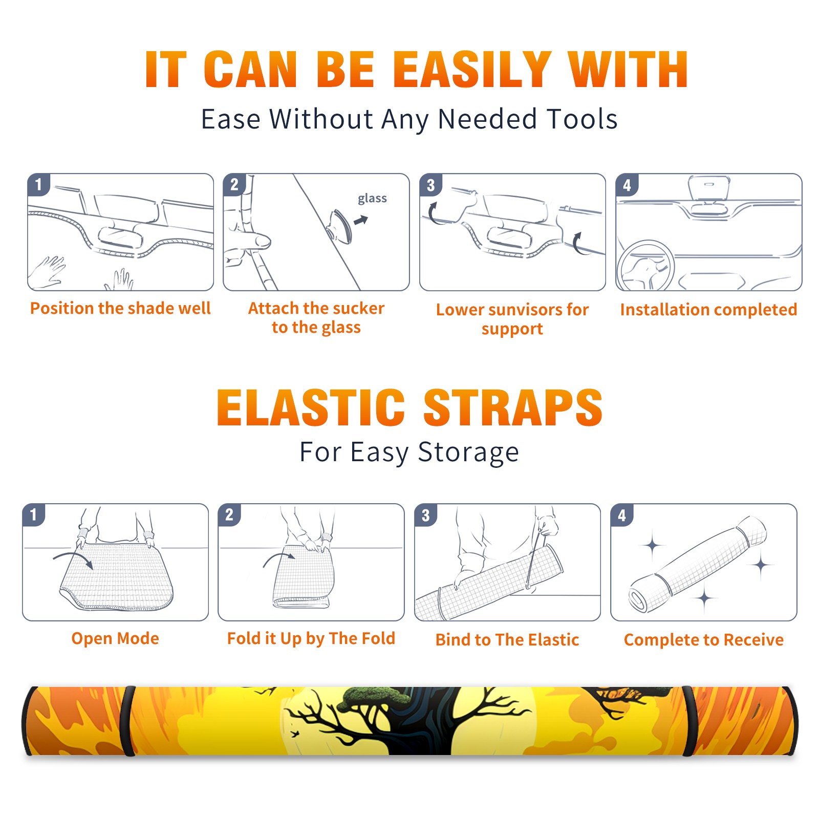 • Diameter /Size 63"L x 33.5"W Made from excellent materials which makes it sturdy and protects the car from the sun. Easy to use and pack. Makes the interior of the car cooler.You can easily stash the sunshade in the storage bag or store long term.It open and closes easy. Also the leather storage bag is durable and easy to put the umbrella back into.This windshield sunshade provides complete coverage and keeps your car interior cool under direct sun. It is easy to open and position under the windshield and around the rear-view mirror. Makes Your Car Easy To Identify, Perfect For Finding Your Car In Crowded Parking Lots And Garages.Great Choice: It Is A Great Gift For Dad, Boyfriend, Brother, Brother And Uncle, Friends, Classmates, Family And So On. Notice: Due To Difference Computer Monitors, The Color Maybe Slightly Different From Picture. As Different Measurement Methods, Measurement Data Will Float Within 2%.I Hope You Understand. If You Have Any Question About The Item Please Do Not Hesitate To Contact Us Immediately And We Will Give You A Satisfactory Reply Within 24 Hours.