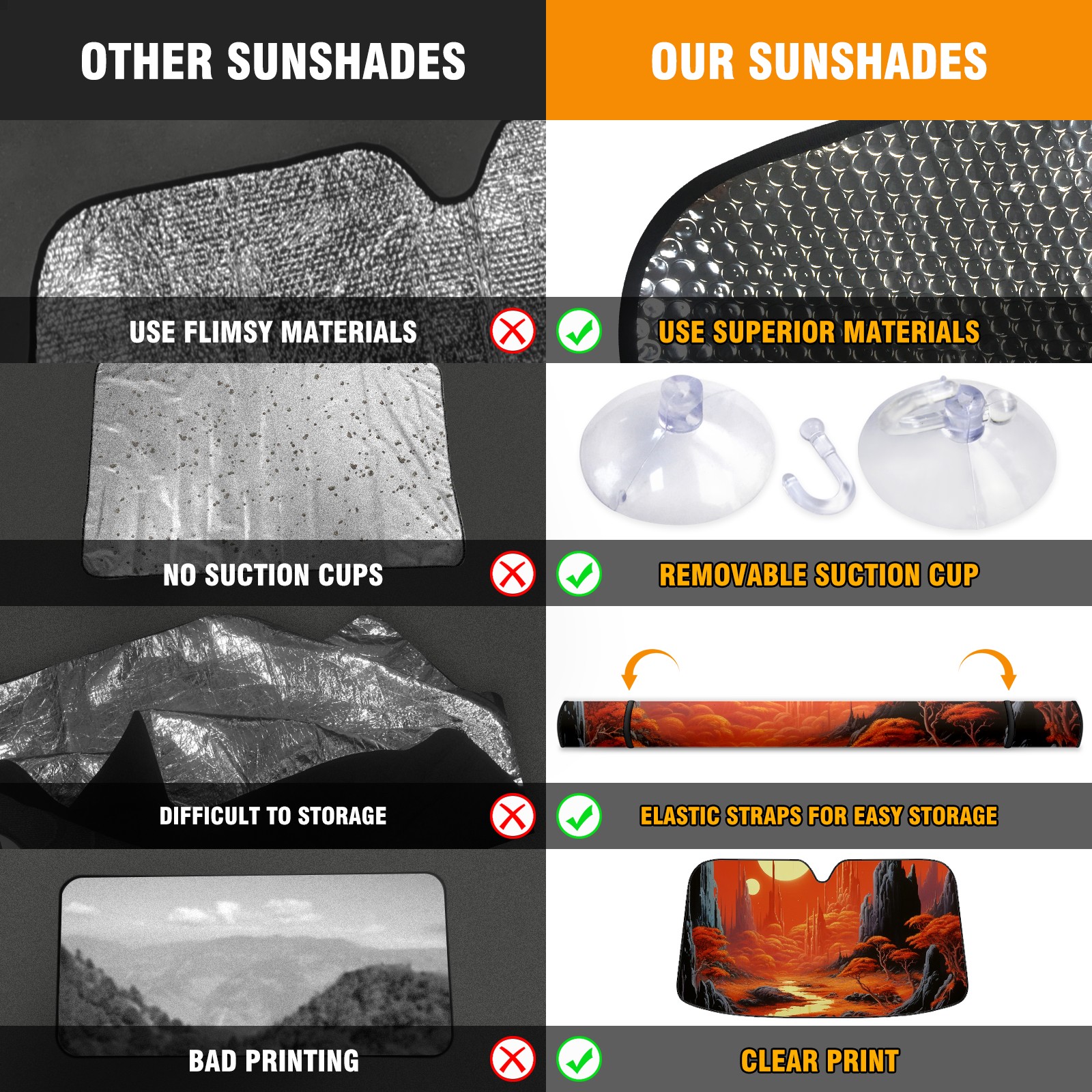 • Diameter /Size 63"L x 33.5"W Made from excellent materials which makes it sturdy and protects the car from the sun. Easy to use and pack. Makes the interior of the car cooler.You can easily stash the sunshade in the storage bag or store long term.It open and closes easy. Also the leather storage bag is durable and easy to put the umbrella back into.This windshield sunshade provides complete coverage and keeps your car interior cool under direct sun. It is easy to open and position under the windshield and around the rear-view mirror. Makes Your Car Easy To Identify, Perfect For Finding Your Car In Crowded Parking Lots And Garages.Great Choice: It Is A Great Gift For Dad, Boyfriend, Brother, Brother And Uncle, Friends, Classmates, Family And So On. Notice: Due To Difference Computer Monitors, The Color Maybe Slightly Different From Picture. As Different Measurement Methods, Measurement Data Will Float Within 2%.I Hope You Understand. If You Have Any Question About The Item Please Do Not Hesitate To Contact Us Immediately And We Will Give You A Satisfactory Reply Within 24 Hours.