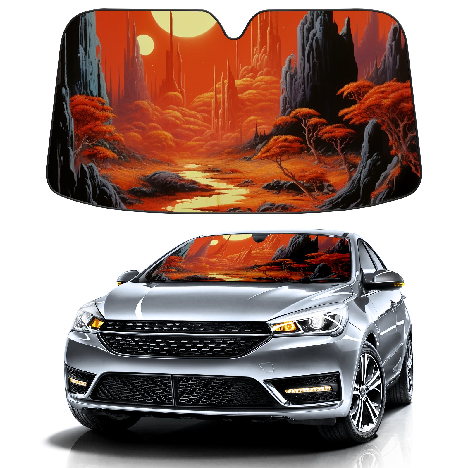 Car Windshield Sun Shade For Front Window Sunset 4 Foldable Vehicle Windshield Car Sun Visor Covers Automotive Window Protector Car Camping Privacy Sun Blocker