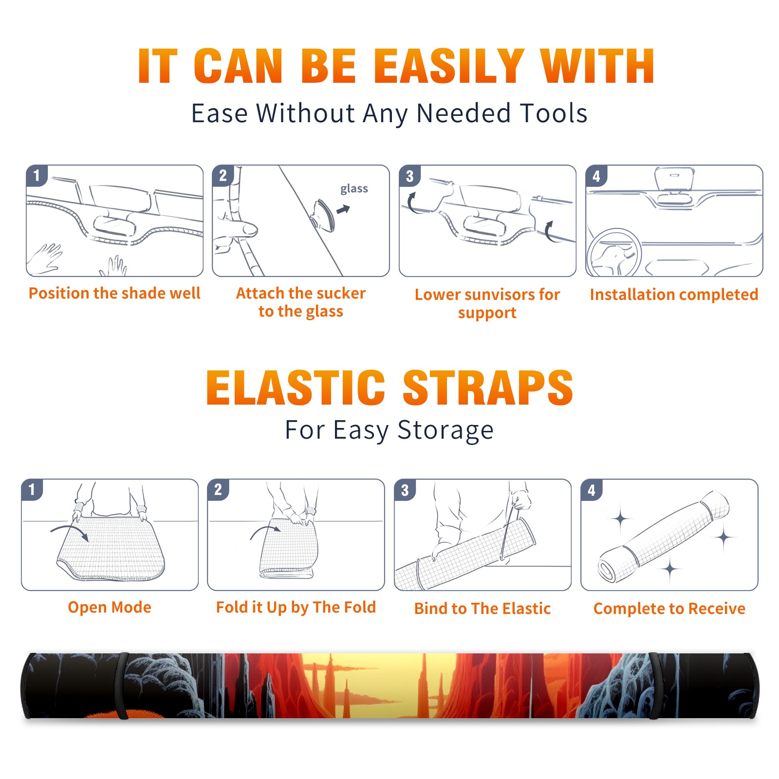 • Diameter /Size 63"L x 33.5"W Made from excellent materials which makes it sturdy and protects the car from the sun. Easy to use and pack. Makes the interior of the car cooler.You can easily stash the sunshade in the storage bag or store long term.It open and closes easy. Also the leather storage bag is durable and easy to put the umbrella back into.This windshield sunshade provides complete coverage and keeps your car interior cool under direct sun. It is easy to open and position under the windshield and around the rear-view mirror. Makes Your Car Easy To Identify, Perfect For Finding Your Car In Crowded Parking Lots And Garages.Great Choice: It Is A Great Gift For Dad, Boyfriend, Brother, Brother And Uncle, Friends, Classmates, Family And So On. Notice: Due To Difference Computer Monitors, The Color Maybe Slightly Different From Picture. As Different Measurement Methods, Measurement Data Will Float Within 2%.I Hope You Understand. If You Have Any Question About The Item Please Do Not Hesitate To Contact Us Immediately And We Will Give You A Satisfactory Reply Within 24 Hours.