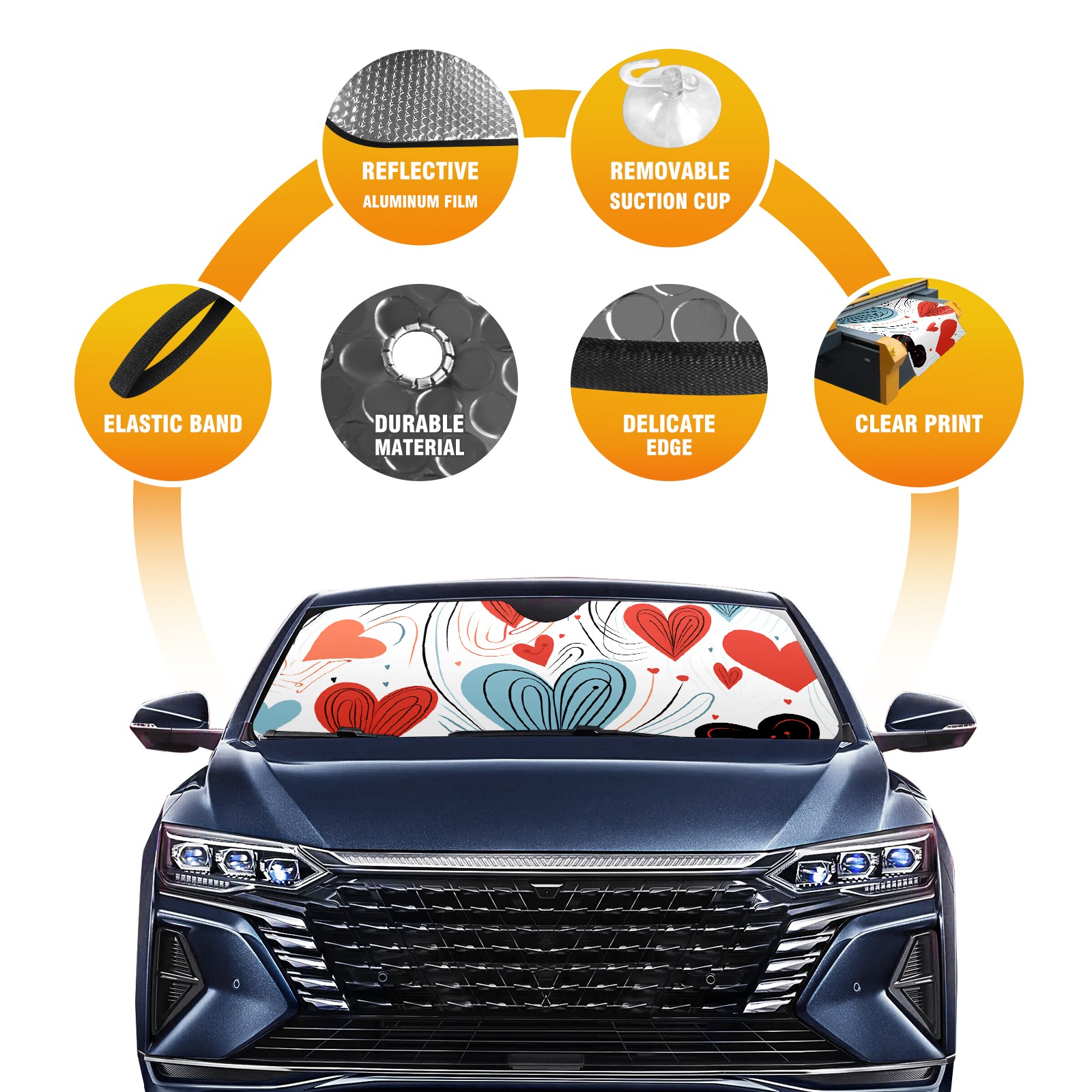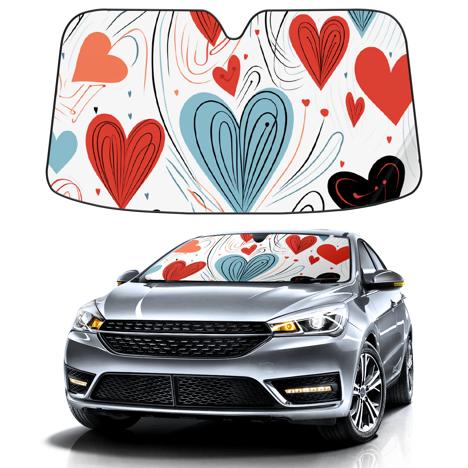 Car Windshield Sun Shade For Front Window Love Foldable Vehicle Windshield Car Sun Visor Covers Automotive Window Protector Car Camping Privacy Sun Blocker