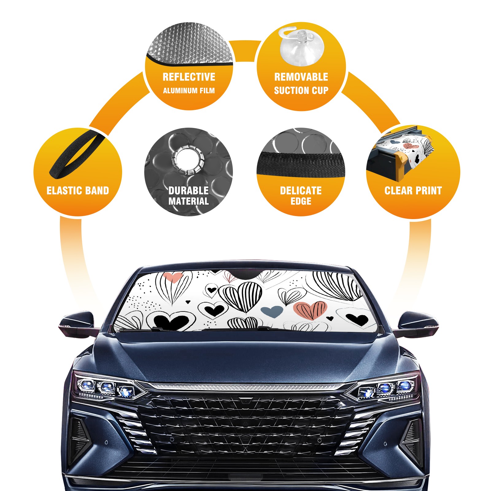 Car Windshield Sun Shade For Front Window Love 1 Foldable Vehicle Windshield Car Sun Visor Covers Automotive Window Protector Car Camping Privacy Sun Blocker