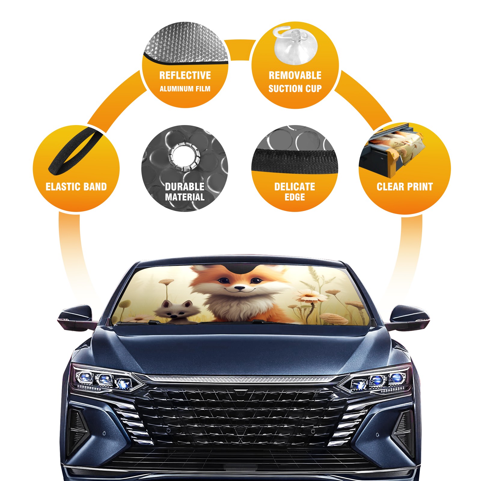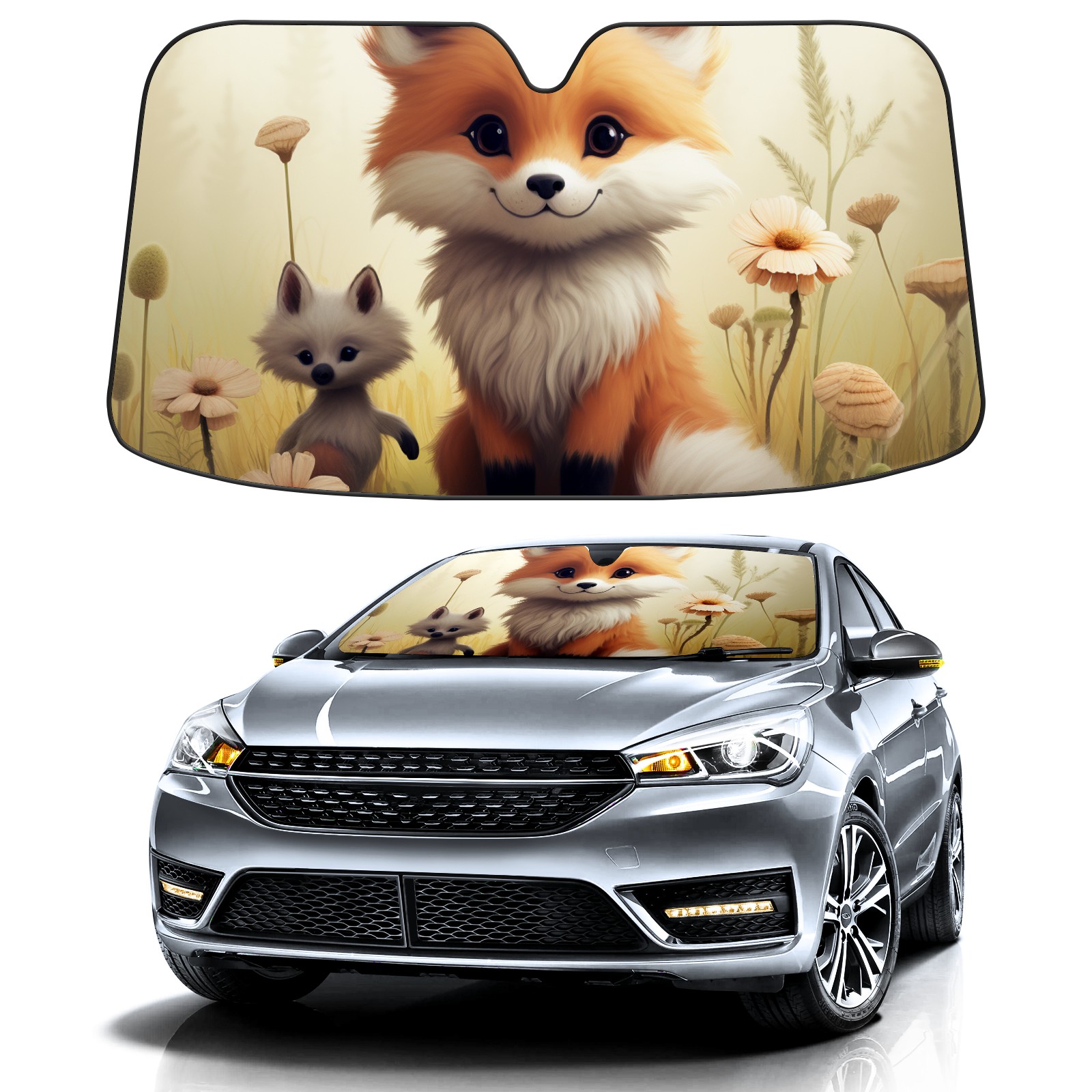 Car Windshield Sun Shade For Front Window Fox 2 Foldable Vehicle Windshield Car Sun Visor Covers Automotive Window Protector Car Camping Privacy Sun Blocker