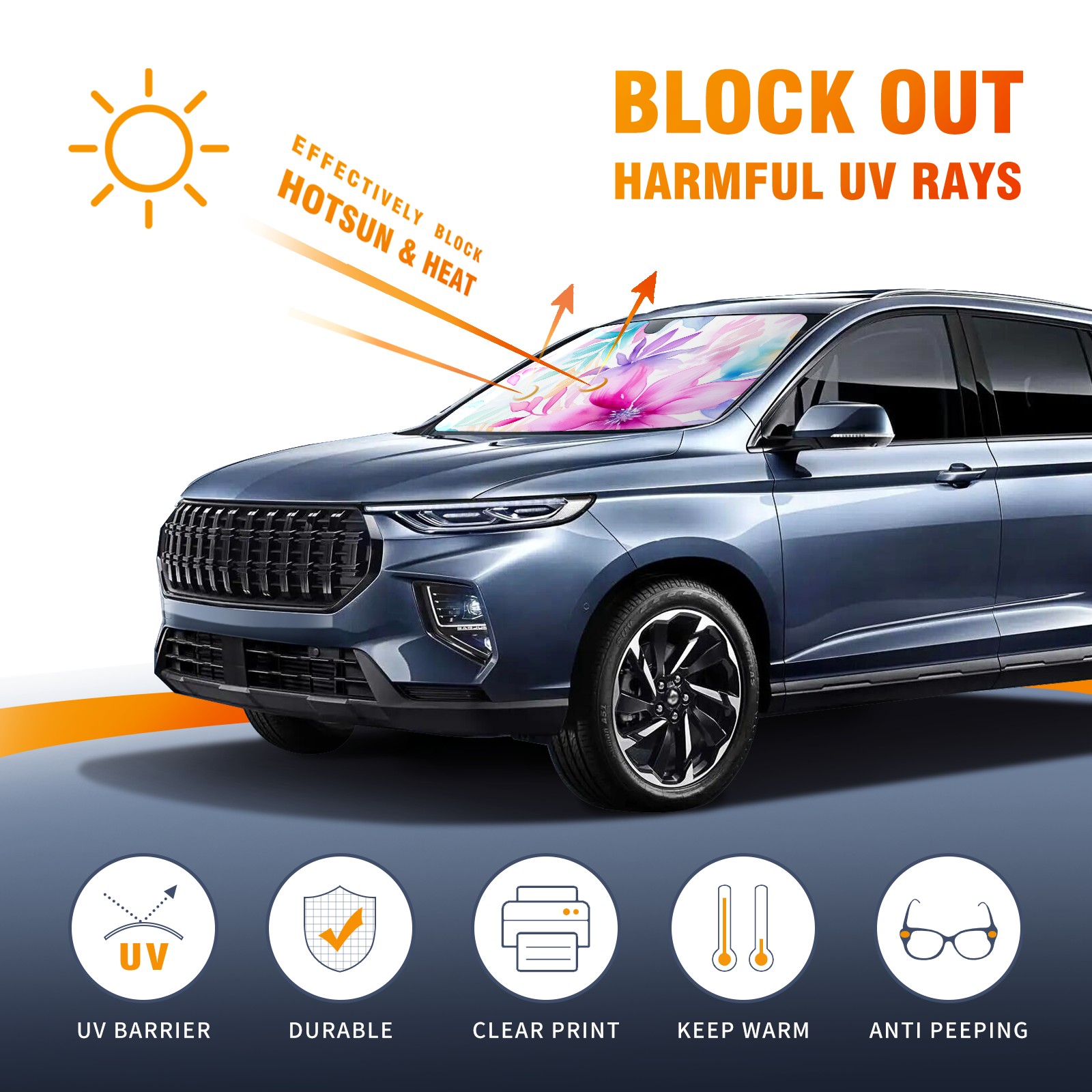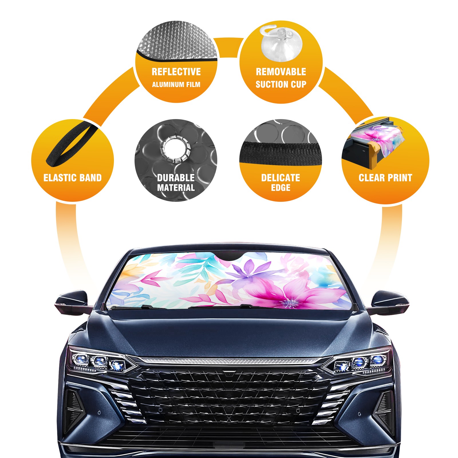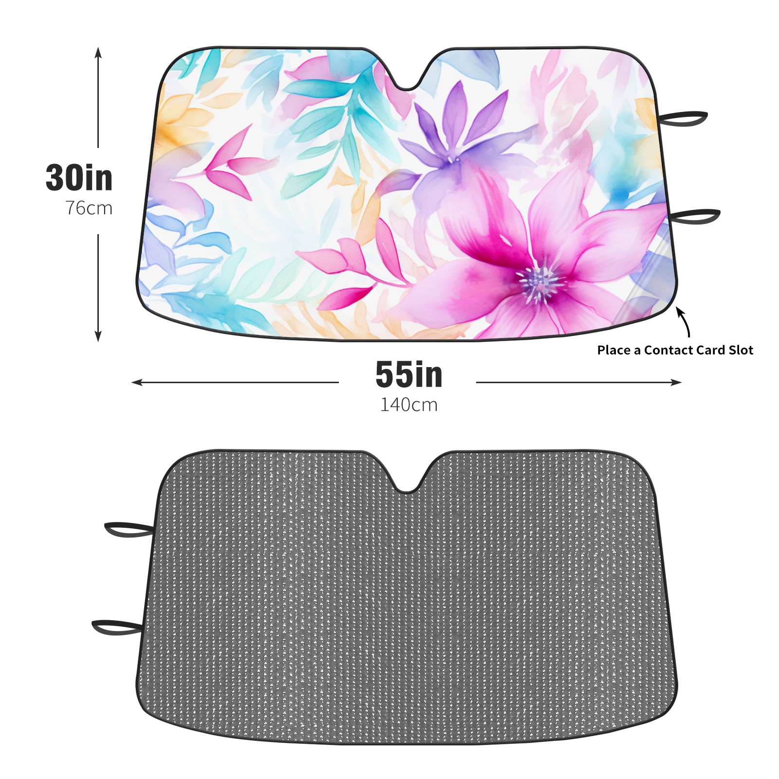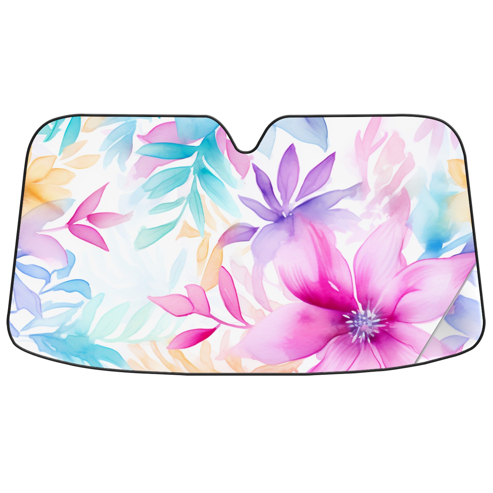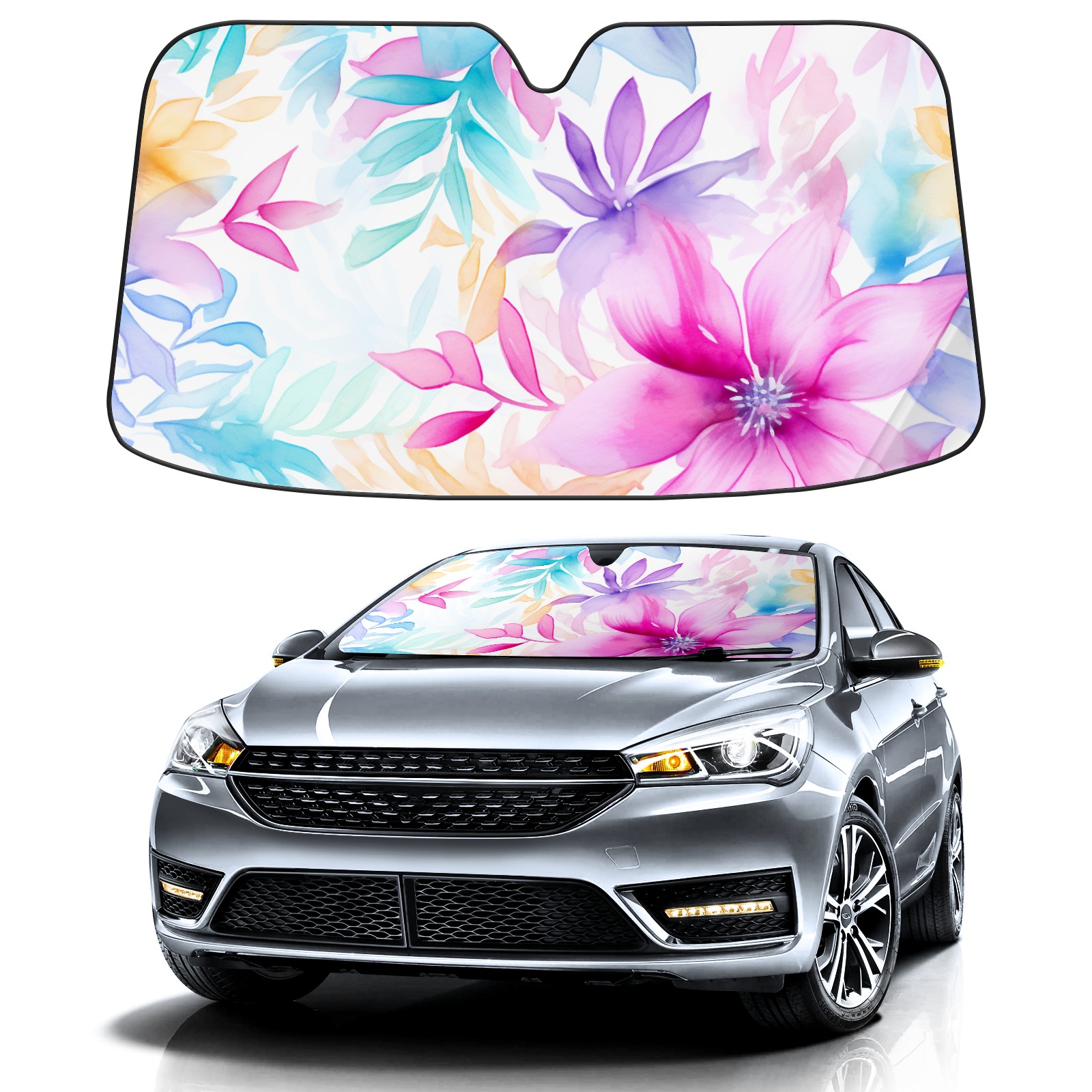 Car Windshield Sun Shade For Front Window Watercolor Flower3 Foldable Vehicle Windshield Car Sun Visor Covers Automotive Window Protector Car Camping Privacy Sun Blocker