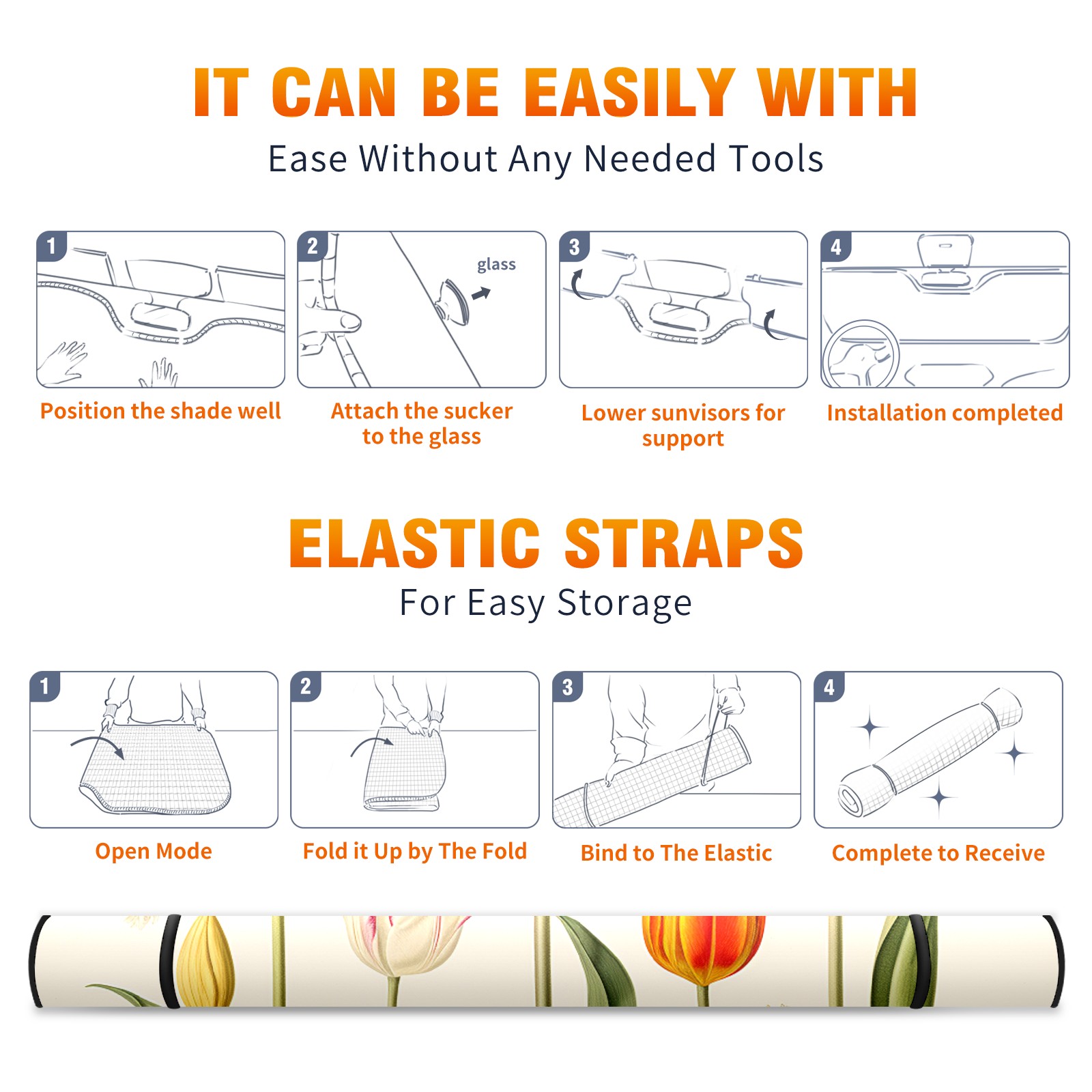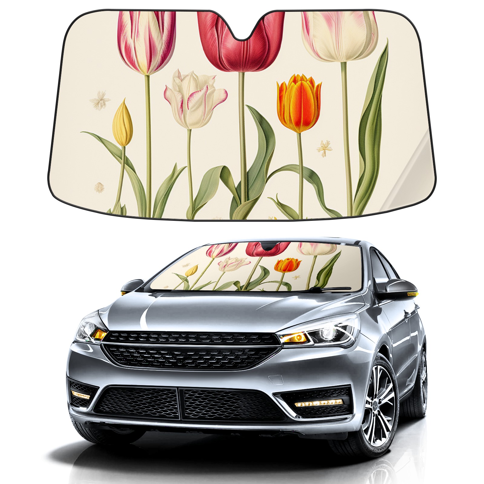 Car Windshield Sun Shade For Front Window Tulips3 Foldable Vehicle Windshield Car Sun Visor Covers Automotive Window Protector Car Camping Privacy Sun Blocker