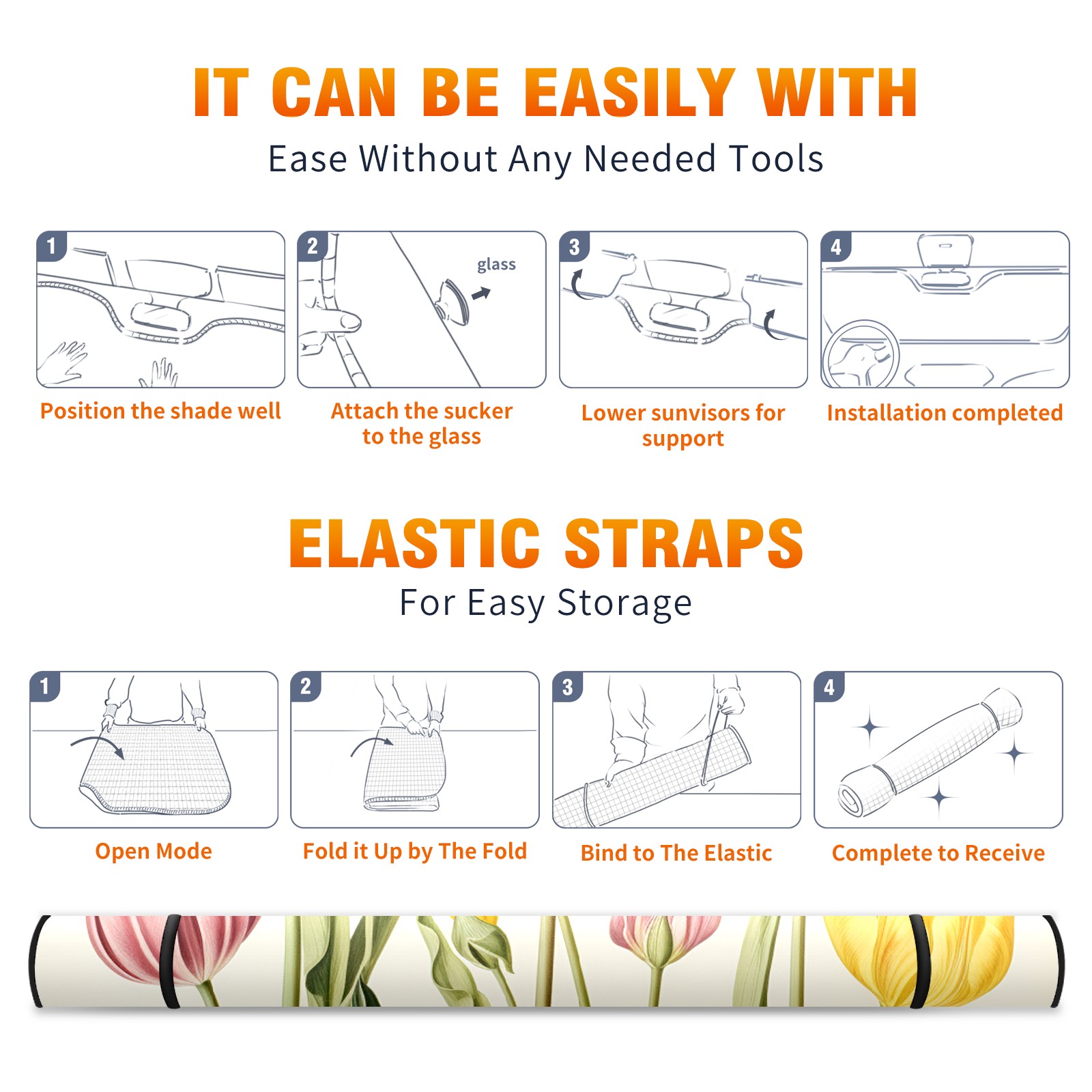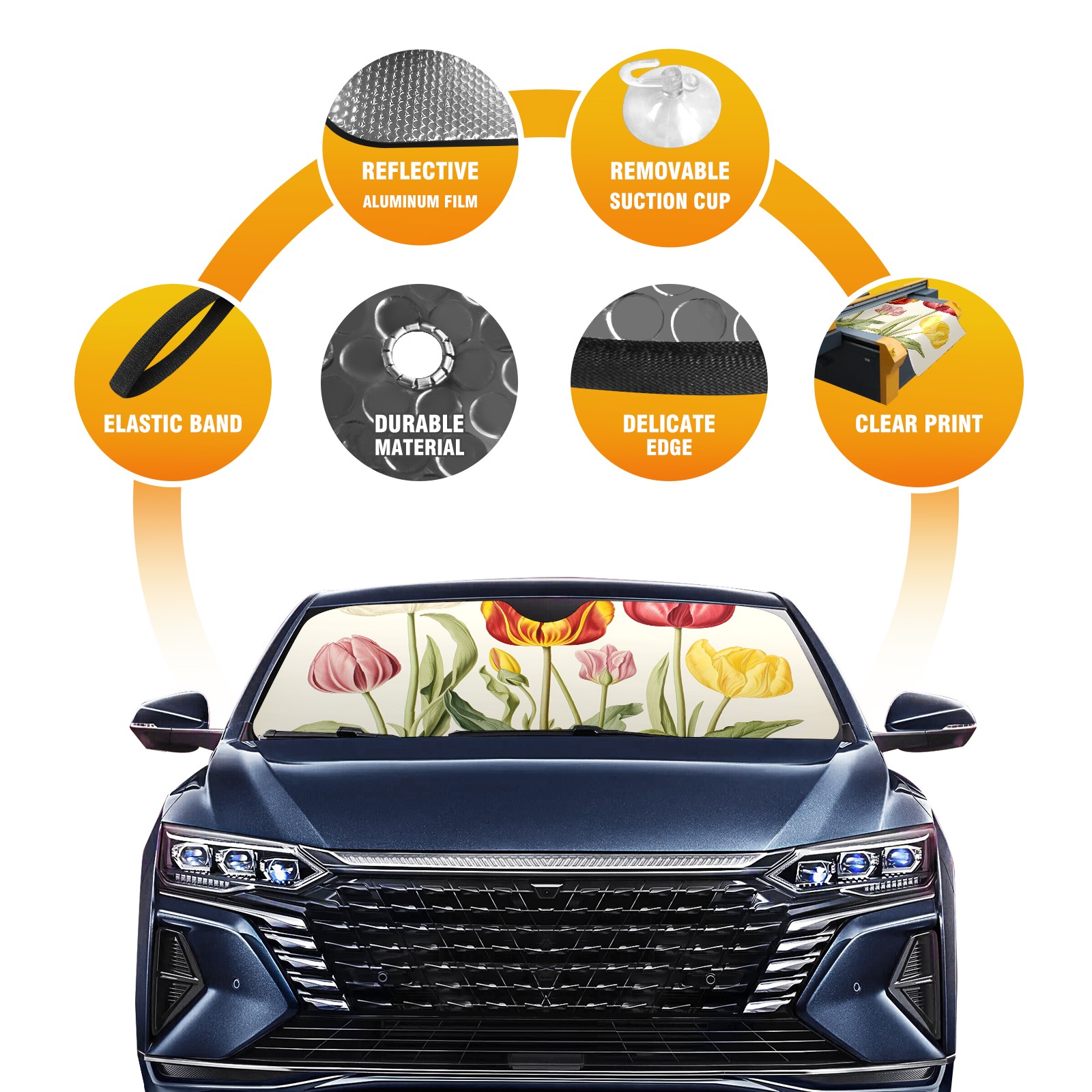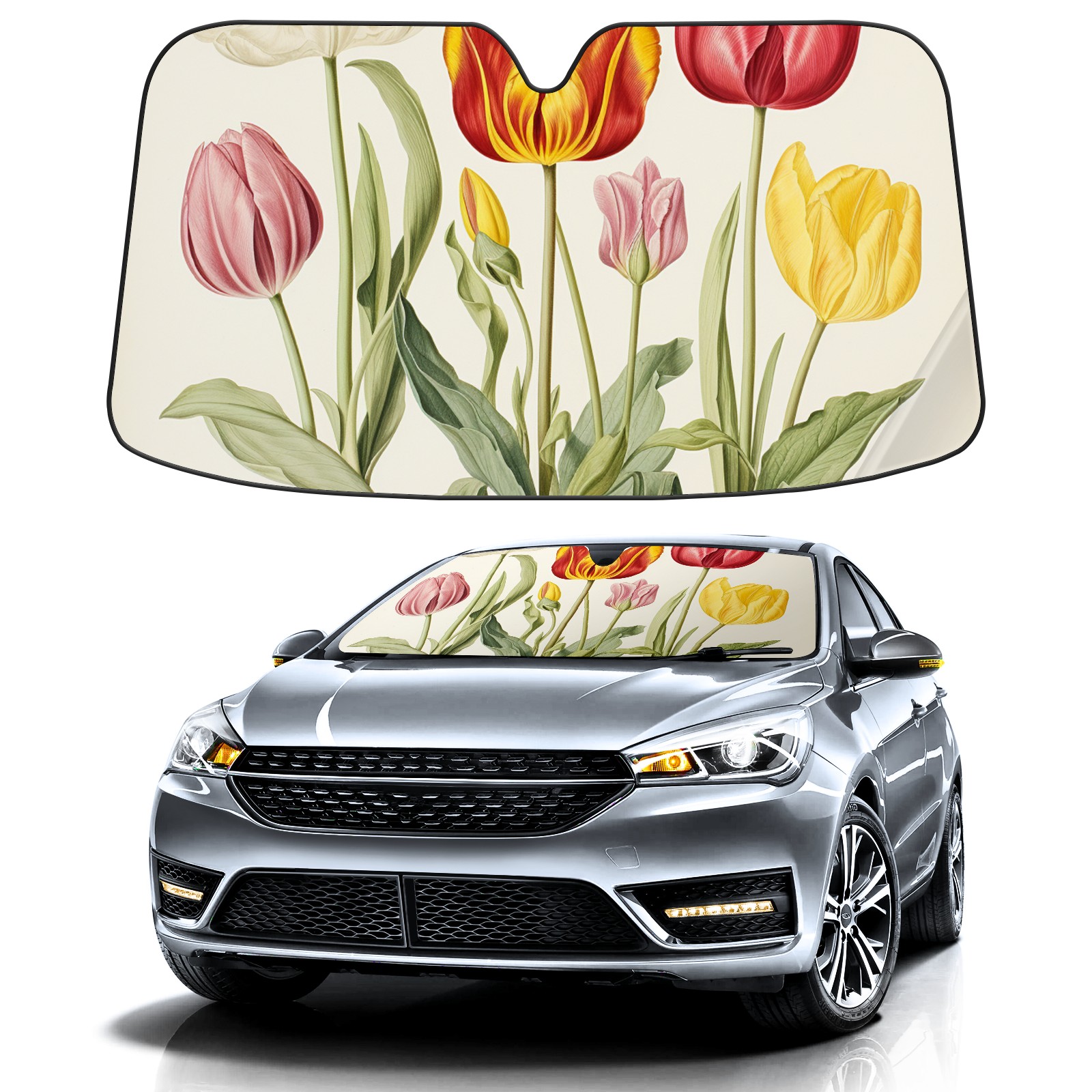 Car Windshield Sun Shade For Front Window Tulips2 Foldable Vehicle Windshield Car Sun Visor Covers Automotive Window Protector Car Camping Privacy Sun Blocker