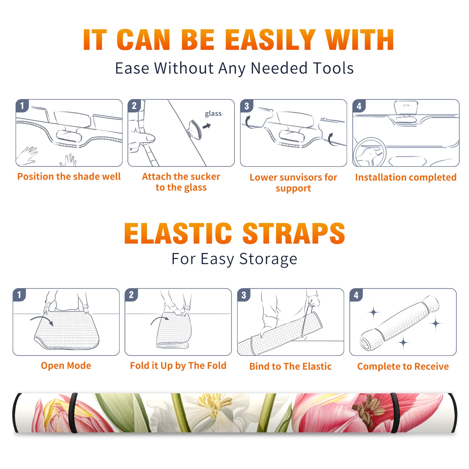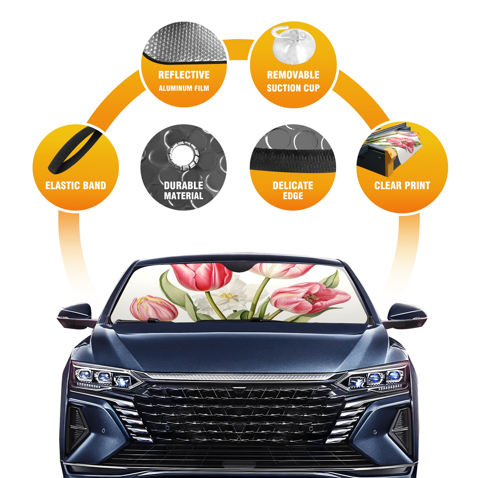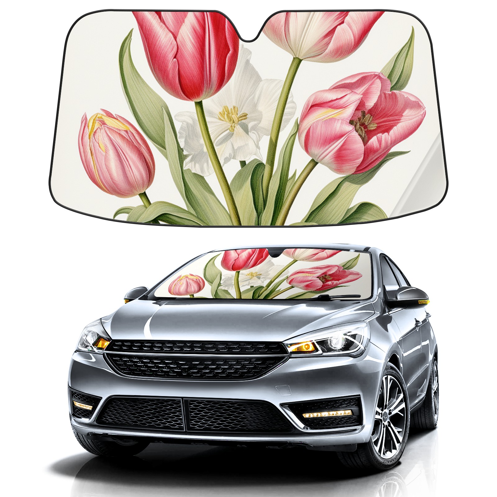 Car Windshield Sun Shade For Front Window Tulips1 Foldable Vehicle Windshield Car Sun Visor Covers Automotive Window Protector Car Camping Privacy Sun Blocker