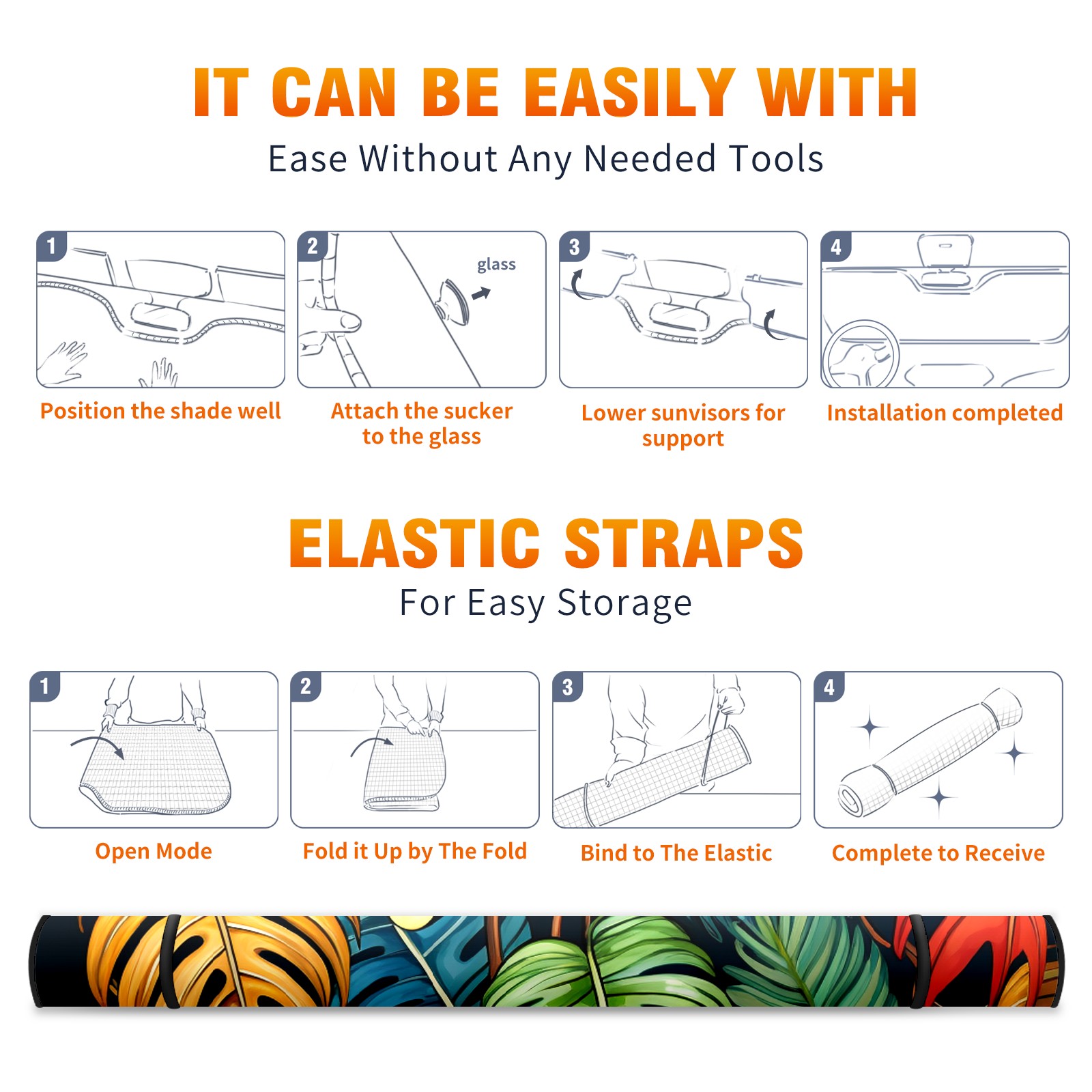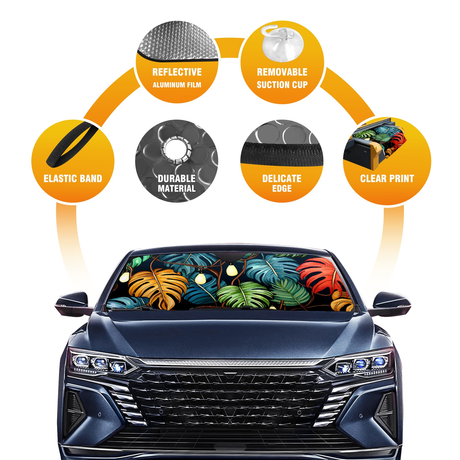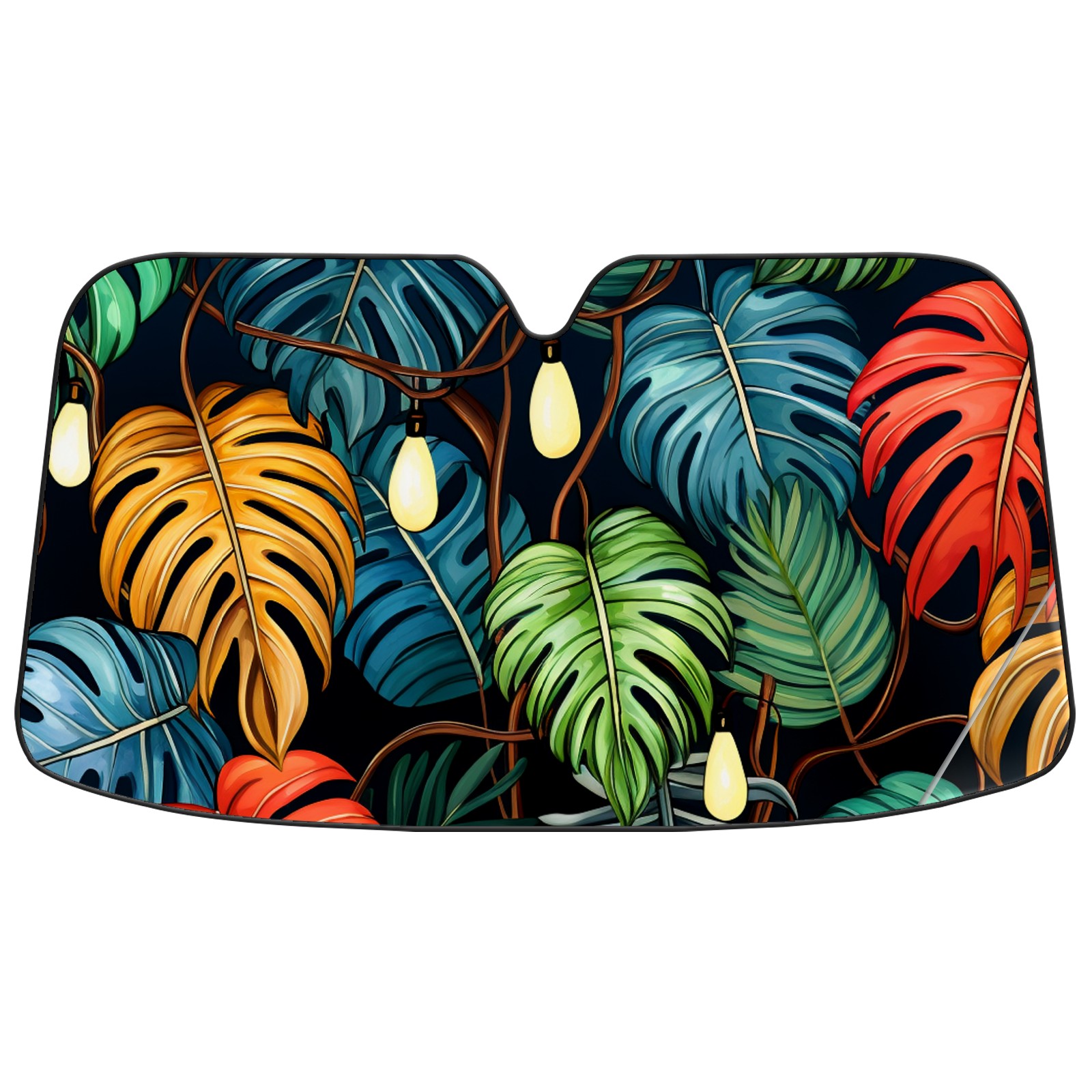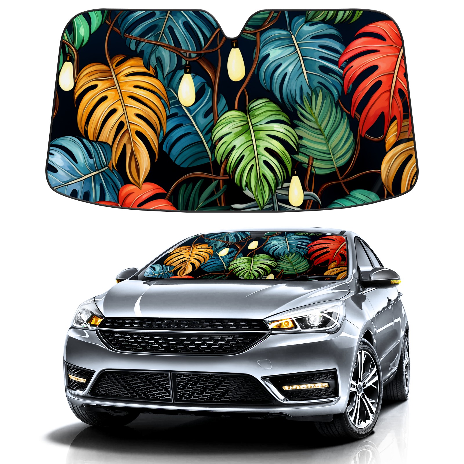 Car Windshield Sun Shade For Front Window Tropical Plants3 Foldable Vehicle Windshield Car Sun Visor Covers Automotive Window Protector Car Camping Privacy Sun Blocker