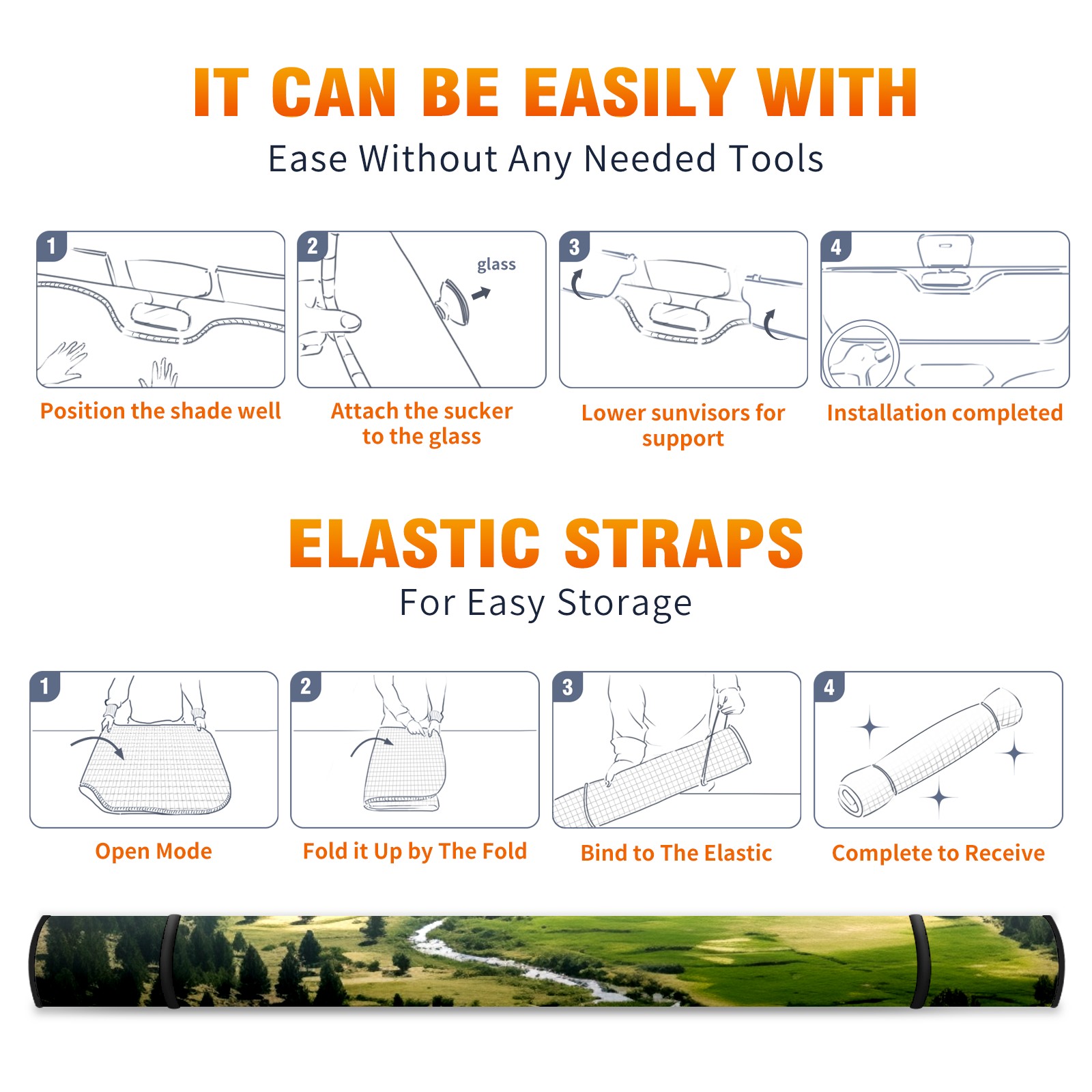 Car Windshield Sun Shade For Front Window Mountain3 Foldable Vehicle Windshield Car Sun Visor Covers Automotive Window Protector Car Camping Privacy Sun Blocker